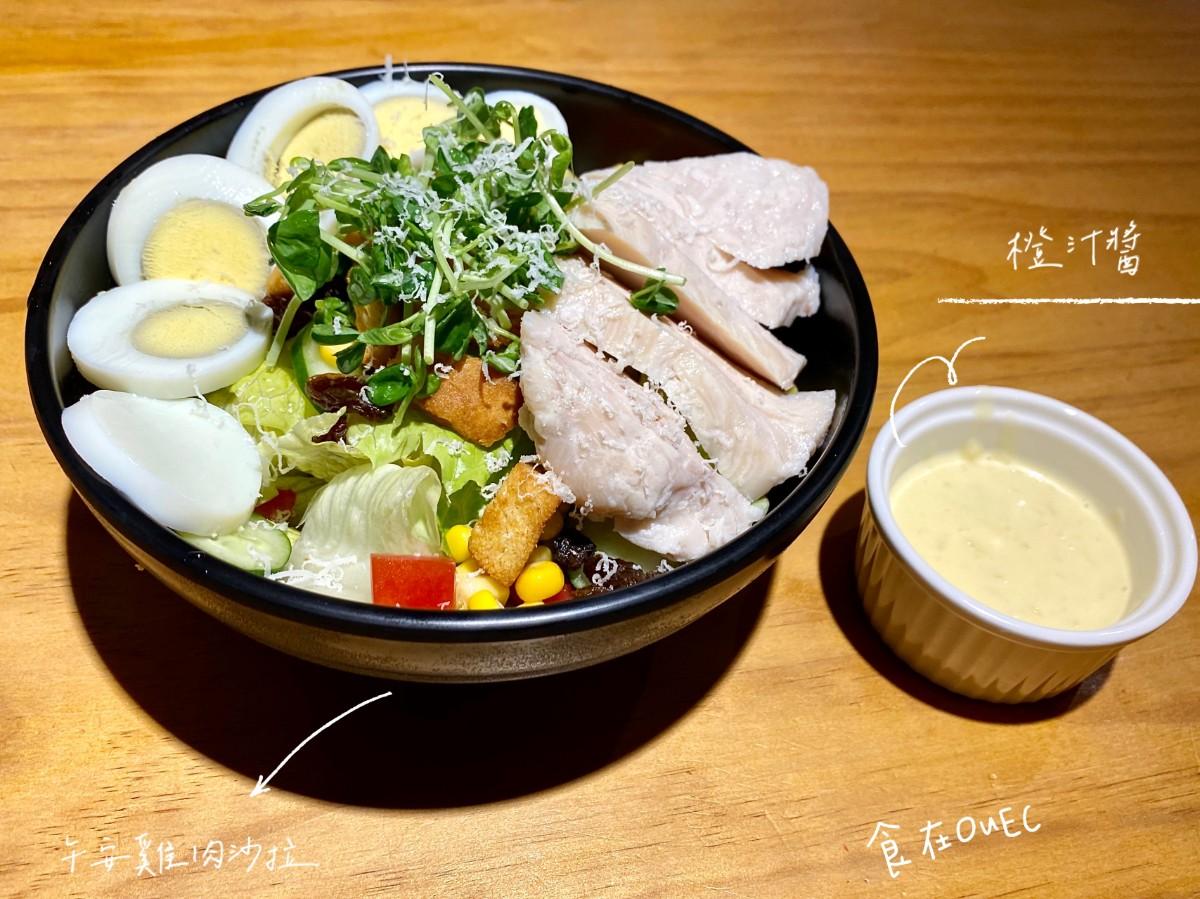 沙拉、薯條、炒蛋、德式香腸還有招牌的XO醬燉飯