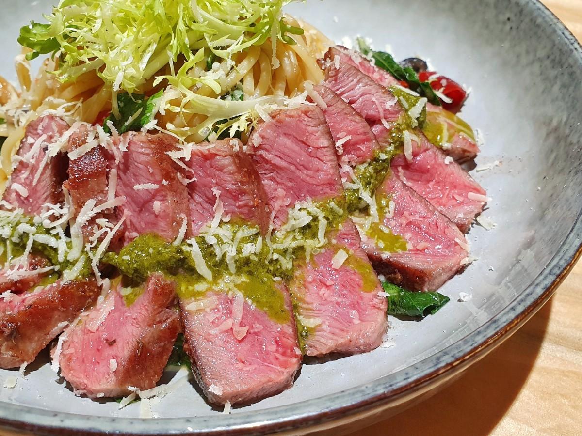 #嫩肩牛佐煙花女義大利麵 的牛肉非常的嫩,麵的軟硬也剛剛好,整體吃起來很清爽,也不會太辣。