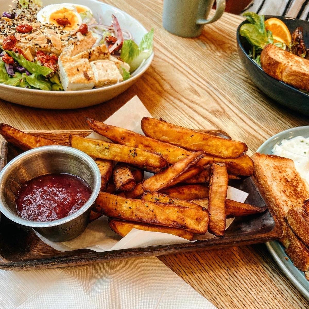 ▪️地瓜🍠薯條🍟,搭配的醬很特別,有點薑的感覺,現在點餐點加飲料可以折30元喔!超推薦現榨果汁🍹