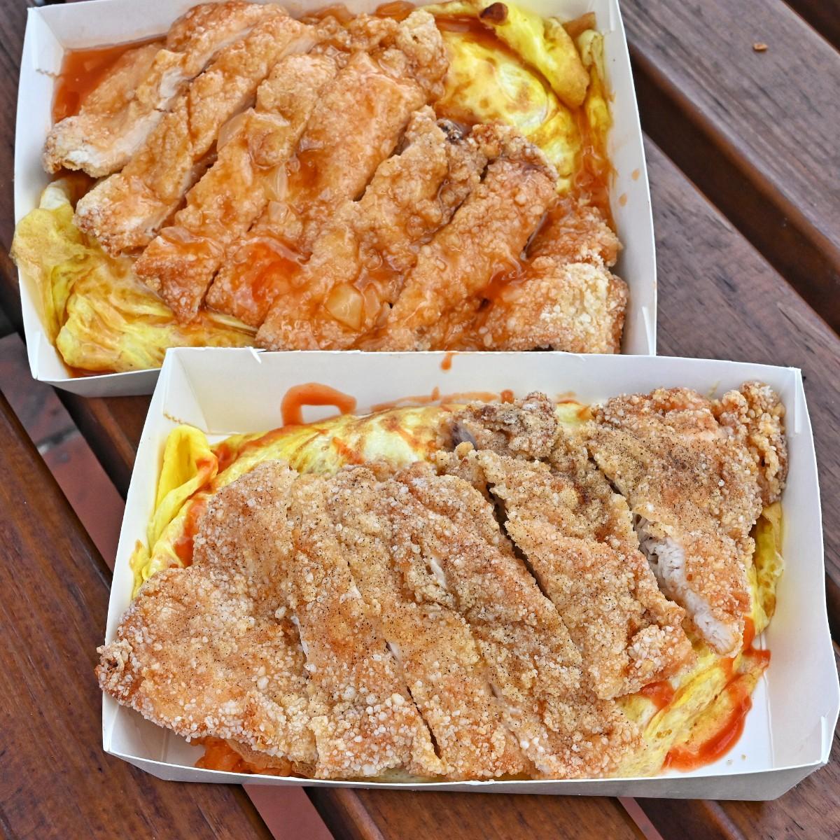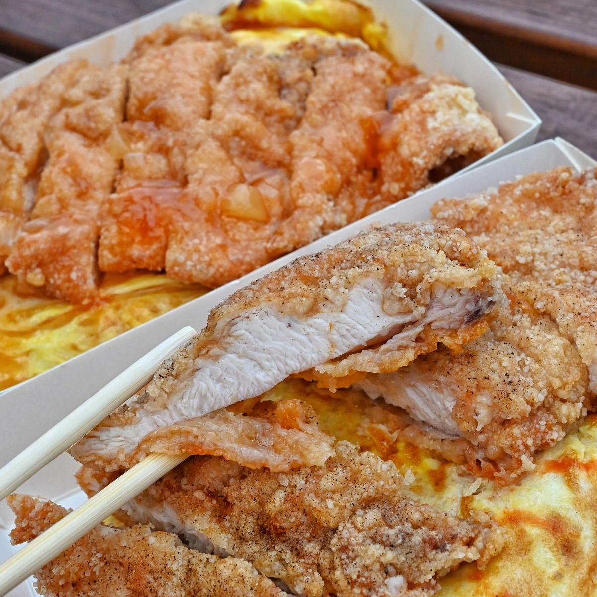 店裡頭的人氣招牌這是這款雞排蛋包飯,雞排現點現炸,還有黑胡椒、椒鹽、糖醋三種醬料可以選,如果想吃脆皮口感可以選椒鹽,外皮炸的超酥脆,肉質厚實不乾柴