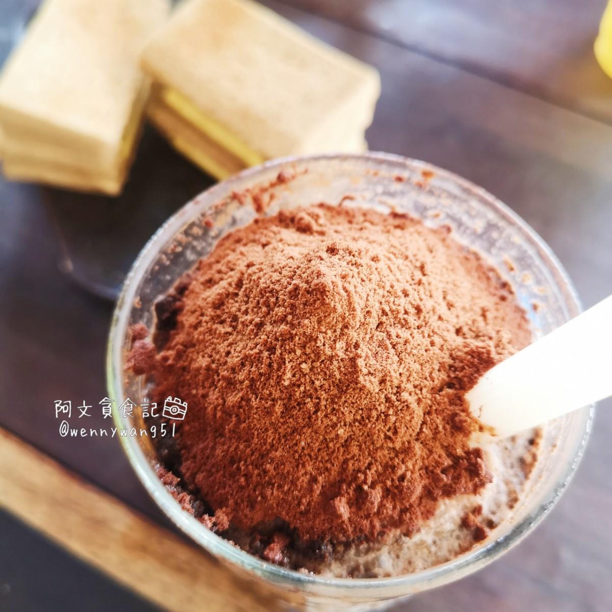 滿滿的美祿巧克力粉直接鋪再飲料上方,