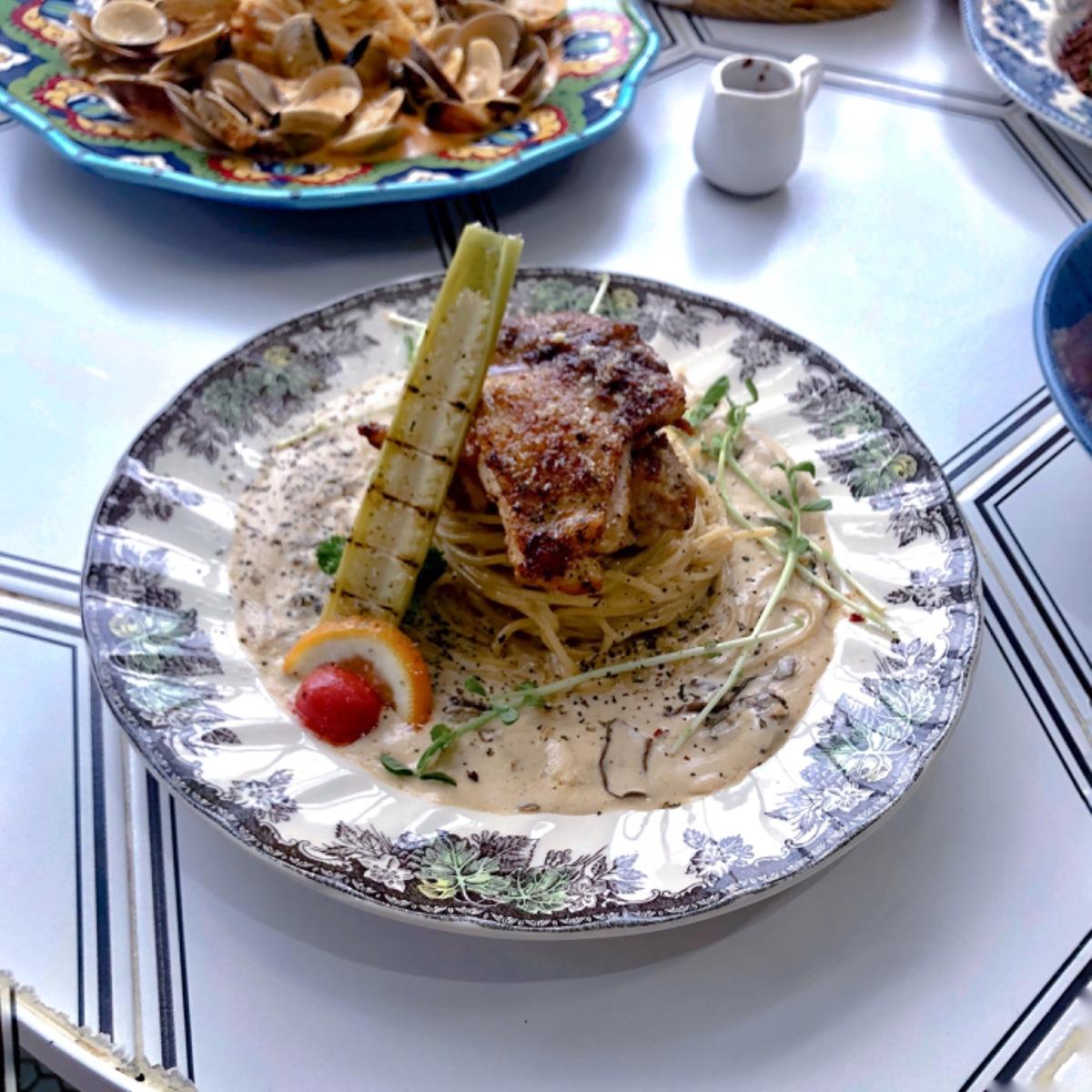 📎奶油辣味牛肝蕈椒麻雞腿排宅宅麵$285