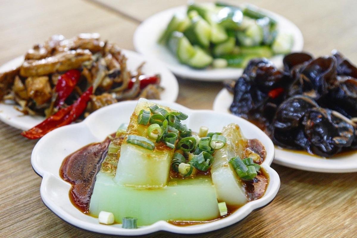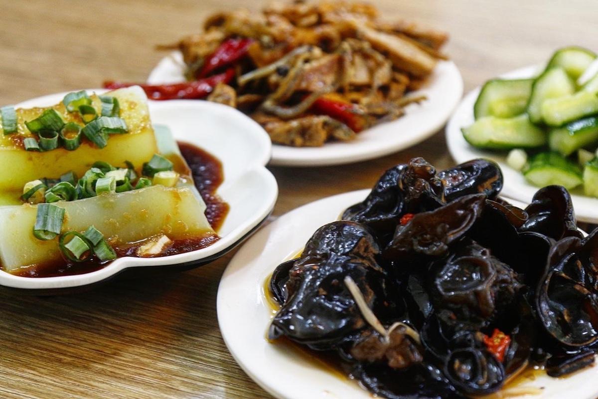 王家水餃除了主食外,還有滿滿的小菜可以選擇,像是小黃瓜,綠豆粉粿,木耳都蠻清爽,很適合拿來搭配水餃吃
