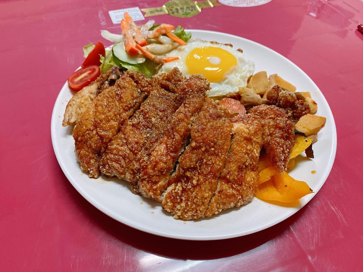 泰式雞排送上來時同行友人讚嘆了那一大盤菜加雞排的組合