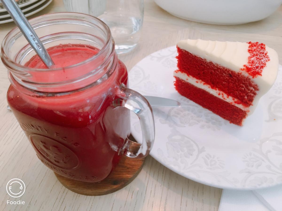 紅絲絨蛋糕🍰、沙拉真的不錯🥗