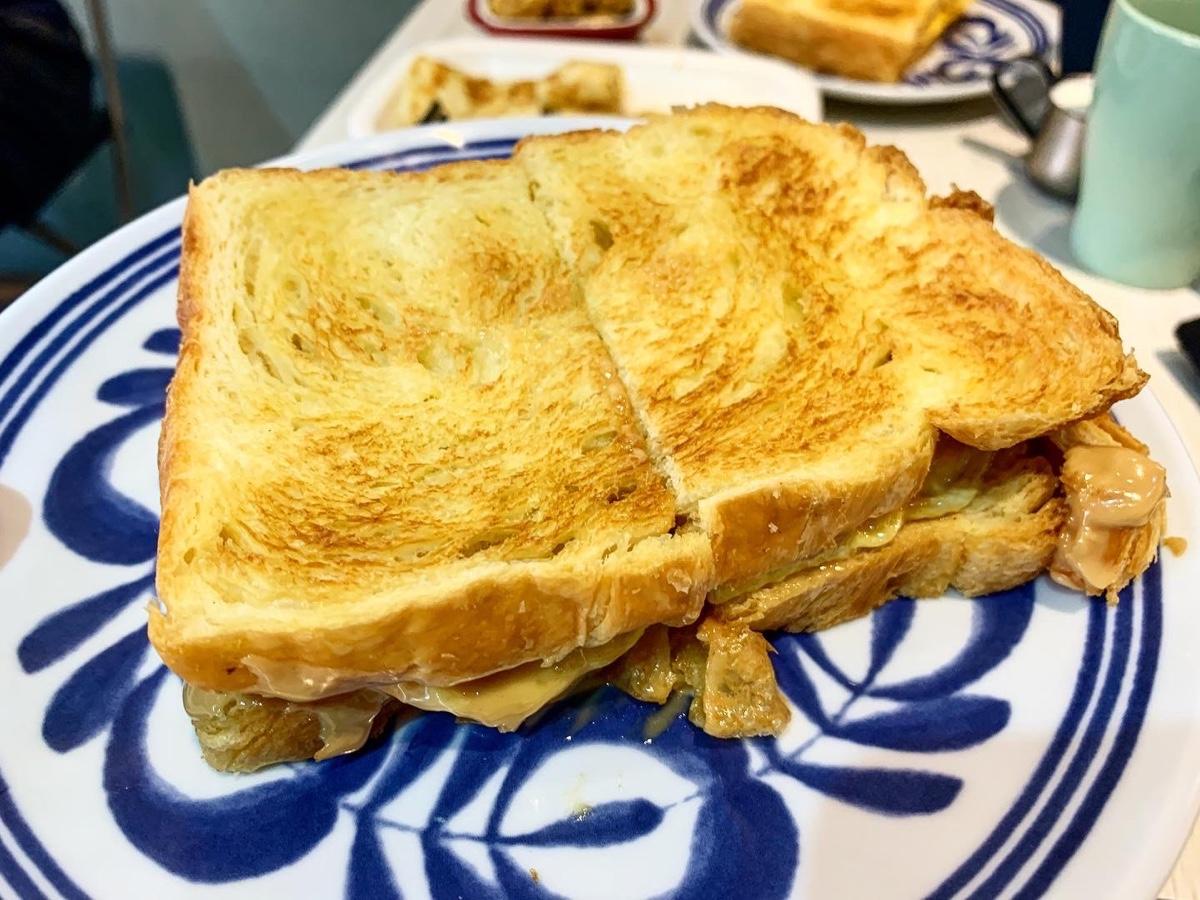 麵包烤的酥脆而且用的不是一般的白吐司是甜的奶香吐司
