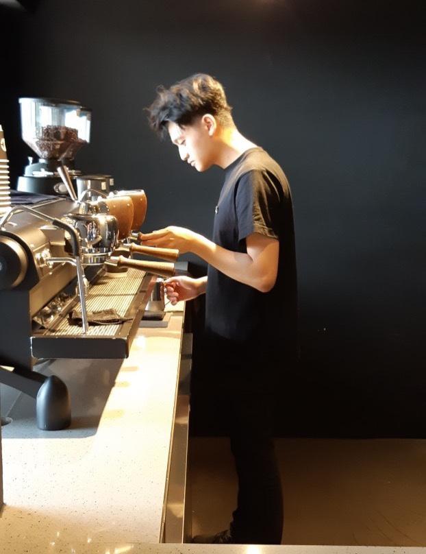 (點完咖啡後,老闆會在小吧台前面為客人展示拉花,很歡迎客人拍攝拉花過程)