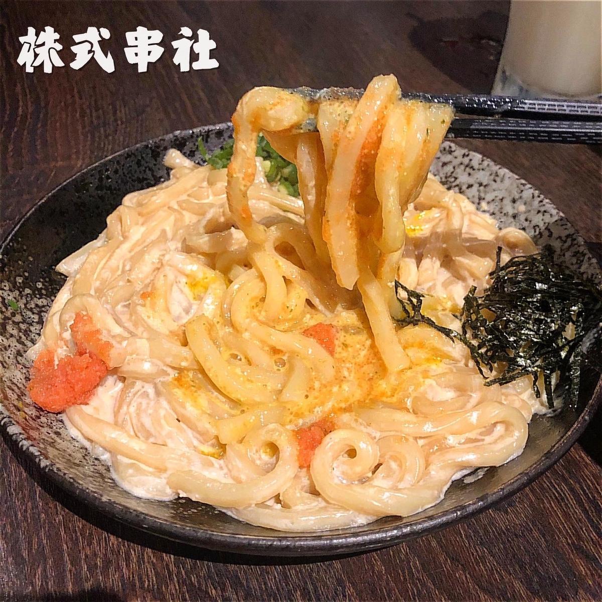 想給他一百顆星星的「明太子烏龍」💯!是我吃過最喜歡的烏龍麵啦,麵條完全吸附奶油白醬的香氣,將生蛋黃、明太子、蔥花、海苔拌入烏龍麵裡,更是一絕啊🤤