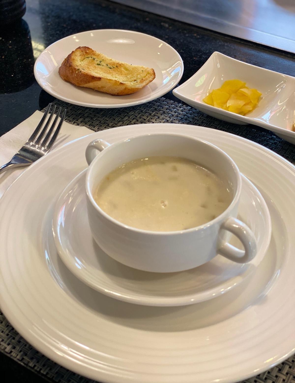 香蒜麵包除了單吃還能沾著湯品一起享用,加拿大龍蝦不多說🦞 #超鮮超美味 ,季節時蔬選用當季の高麗菜,吃得到蔬菜本質の鮮甜🥬;香煎雞腿排主廚採#慢煎 外皮酥脆不油膩,只能說28年經驗果然厲害👍火候控制得很好;而甜品通常是鐵板燒最後一道餐點の靈魂,現做紅豆銅鑼燒,紅豆餡與特製の麵糊放在一起,口感 #香濃綿密 而且非常滿足🙆♀️