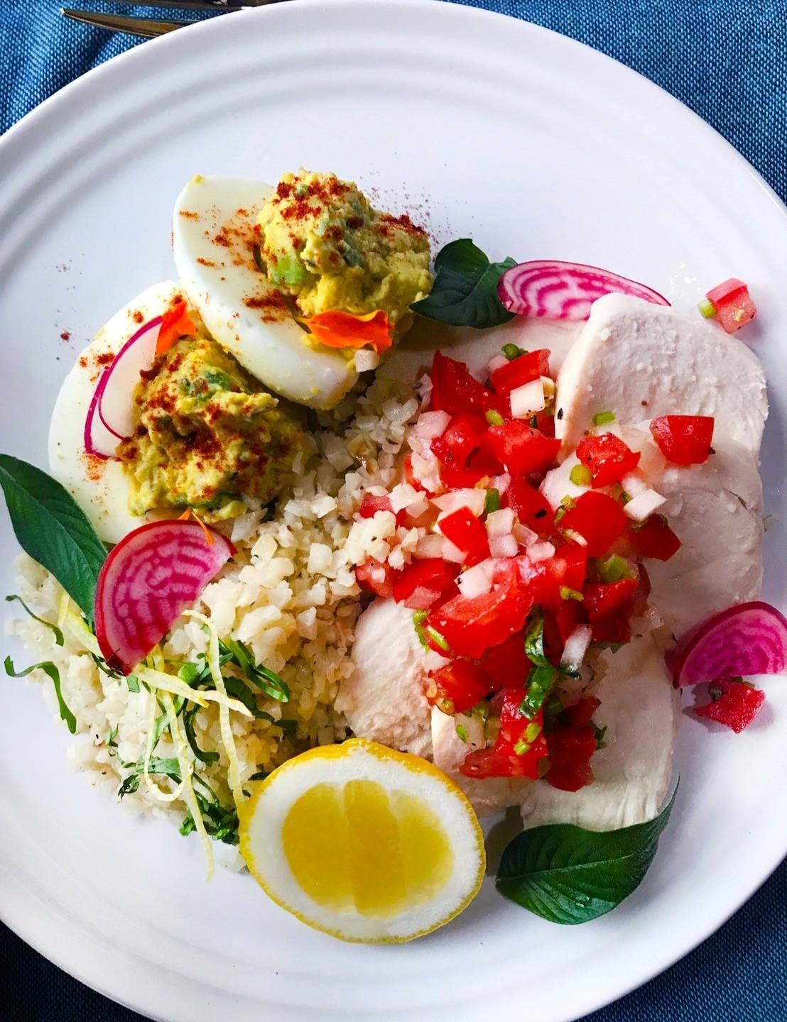 《食譜》炎炎夏日不想出門?外送又貴又不好吃?3招低卡健康餐教你吃飽又不長肉!青檸花椰菜米.番茄雞胸莎莎.酪梨惡魔蛋