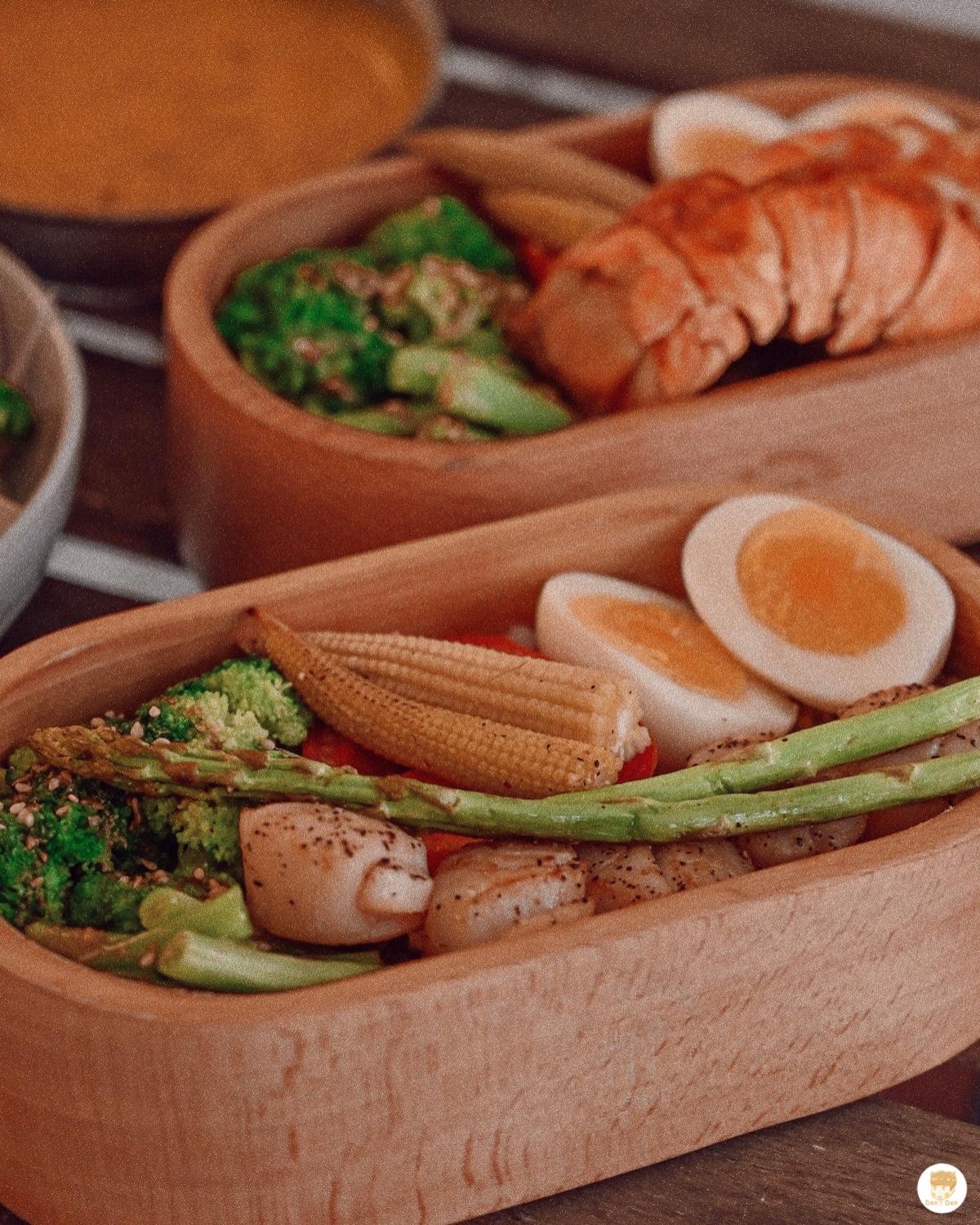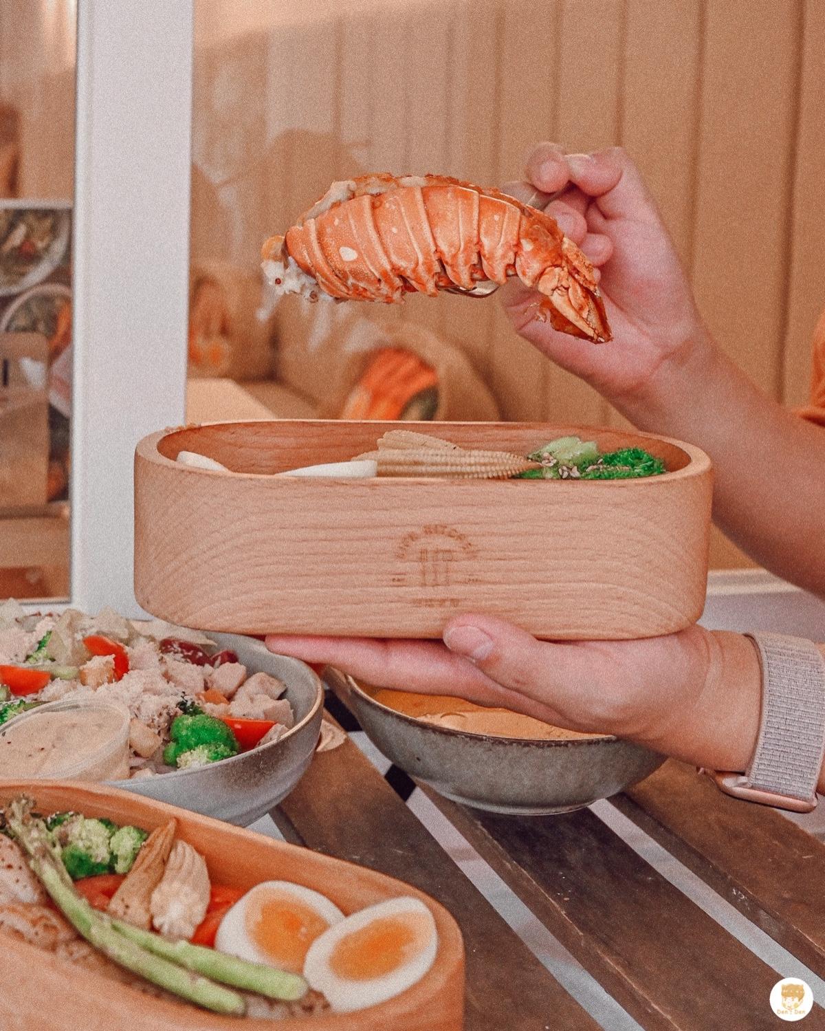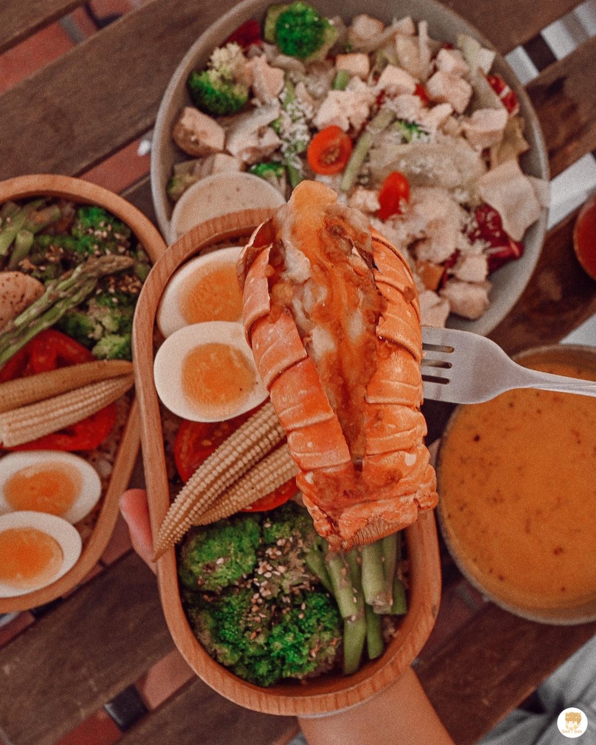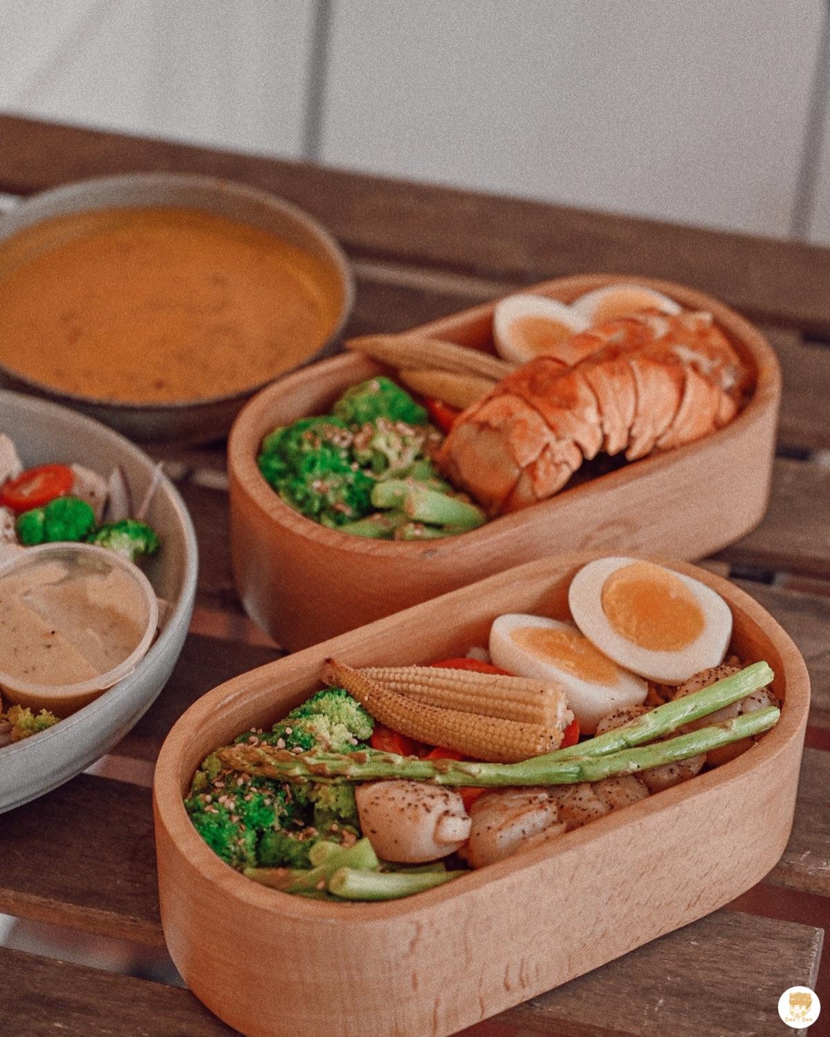 特別選了龍蝦和干貝這類可以直接吃的,干貝很大顆很鮮很好吃,總共有5大顆吃完很滿足;龍蝦也是處理好撥好殼去焗烤,上桌只要左右邊拉開就可以直接吃了,蔬菜加一點胡麻醬也很健康清爽好吃,吃完一整盒營養均衡☺️☺️