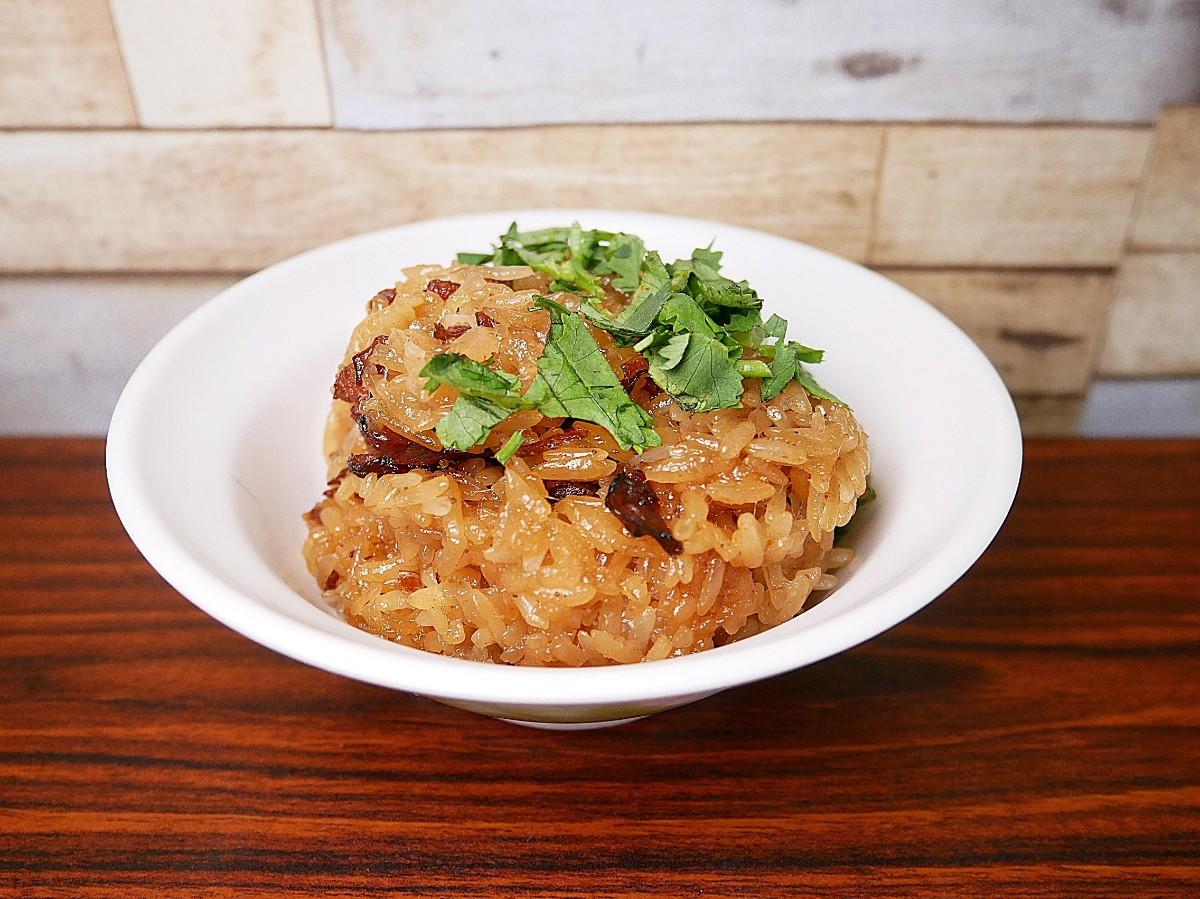 雖然上頭沒有加醬汁所以口感不算濕潤,不過米飯夠鹹香,其實單吃就很夠味,也不至於太乾