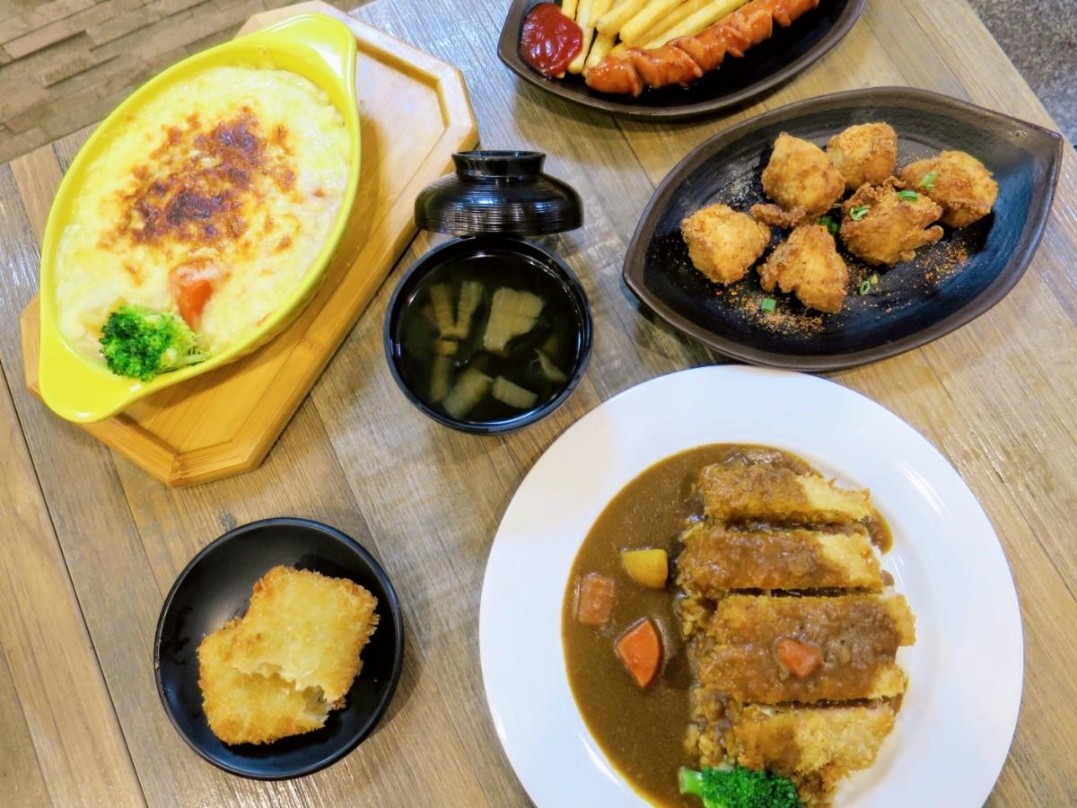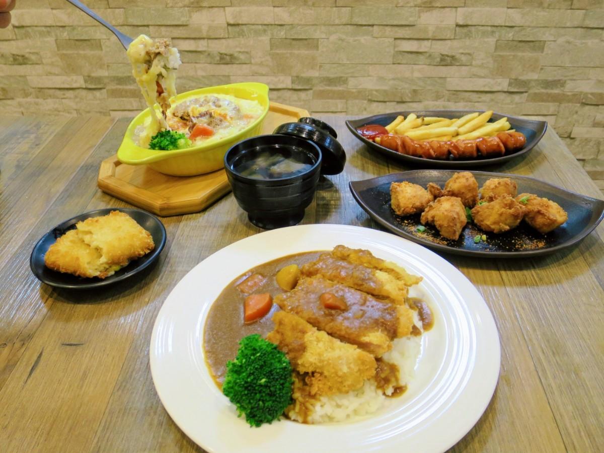 店內提供的餐點非常多元,主餐包含:招牌咖哩飯、義式焗烤飯、日式讚岐烏龍麵、丼飯,也能單點各式小菜和飲品!