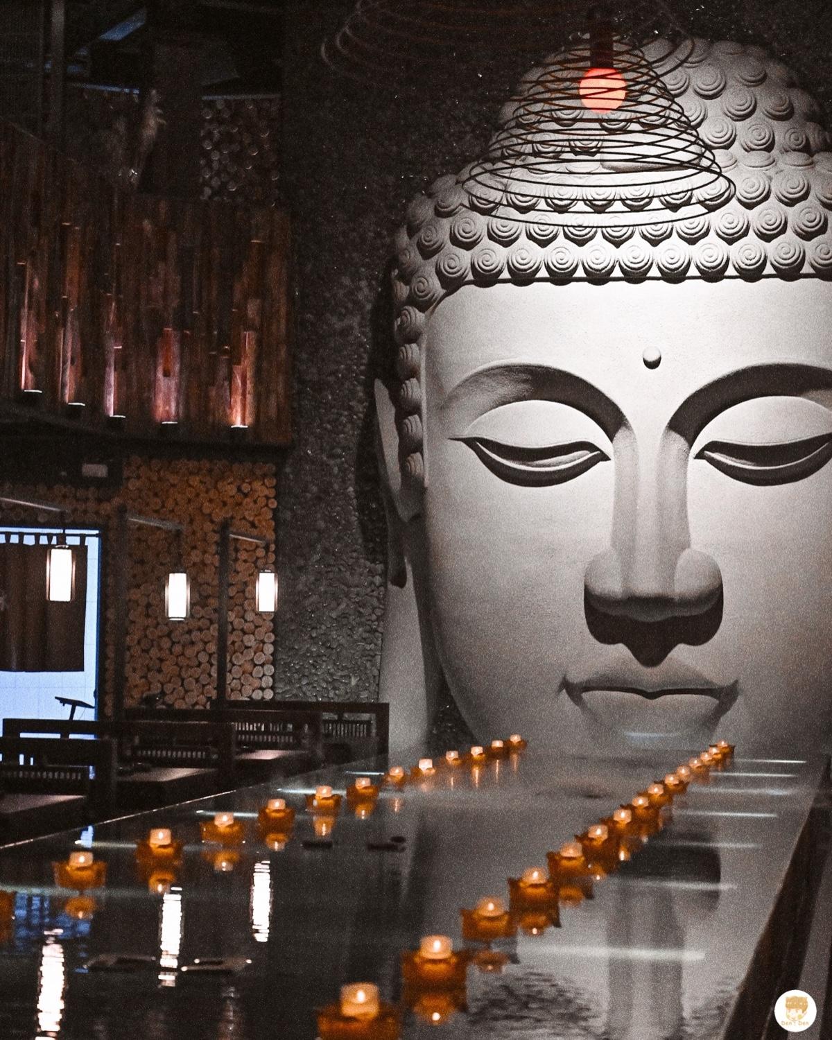 在高雄左營的打卡火鍋店,之前一直被很多人燒到的大佛覺得很酷很想吃,這次剛好陪朋友去吃飯慶生就來吃個宵夜,店內的位子算滿多的也很寬敞,旁邊還有很多蠟燭跟水噴霧滿有意境的,生日店員有幫我們準備一個小蛋糕🤣