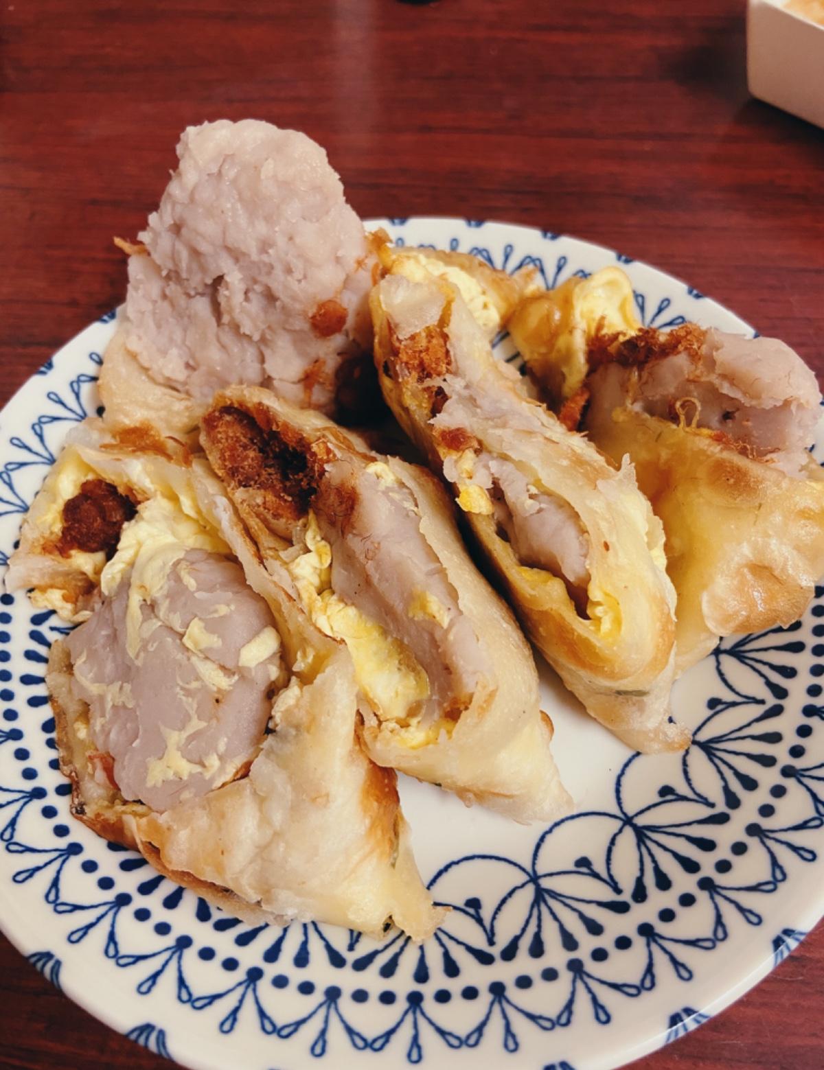 阿桂蛋餅一直是內湖家喻戶曉的早餐店,以餡料豪邁出名,除了口味超多,連蛋餅皮也可以換成酥厚的捲餅(只是變成蛋要另外加點) 今天買了一個芋泥肉鬆蛋餅,但老闆....這爆出來的餡料也太誇張了吧!是芋頭生產過剩嗎? 阿桂蛋餅:台北市內湖區東湖路33巷3號