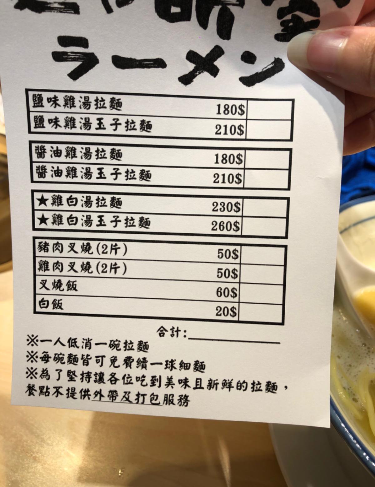 🗣僅限內用不提供外帶及打包、每人低消一碗拉麵、每碗拉麵可免費續麵一球