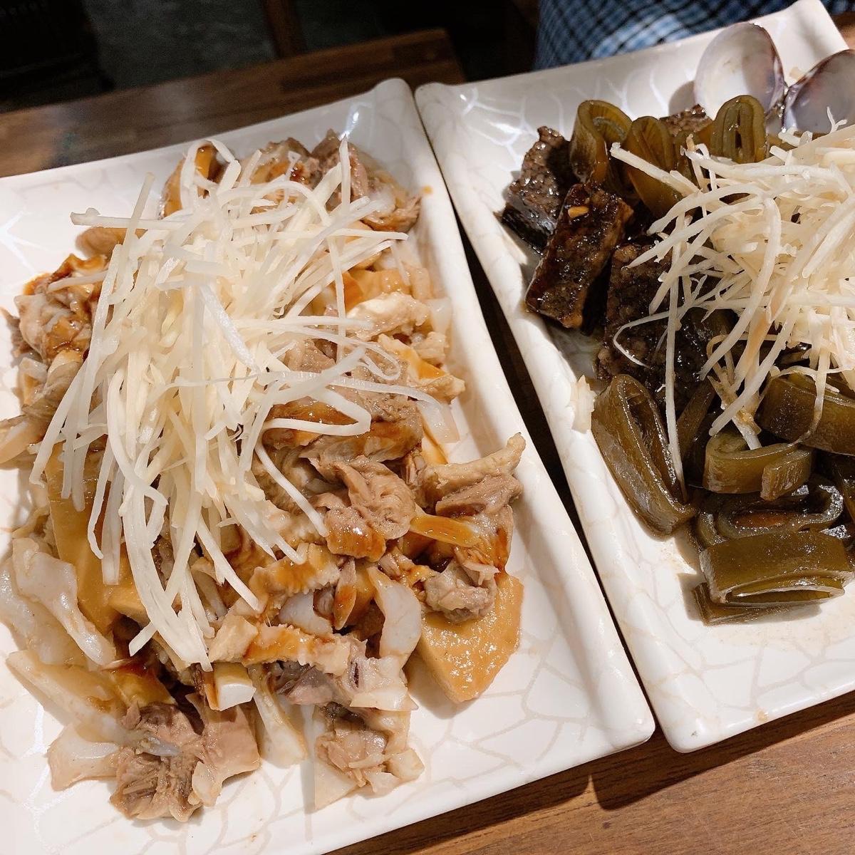 中藥滷味散發微微八角香氣,帶著脆脆軟骨的月亮骨實在太迷人,甜不辣比較普通,但也是古早味十足。