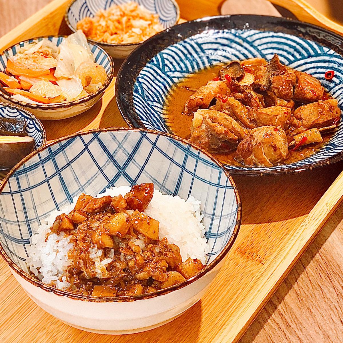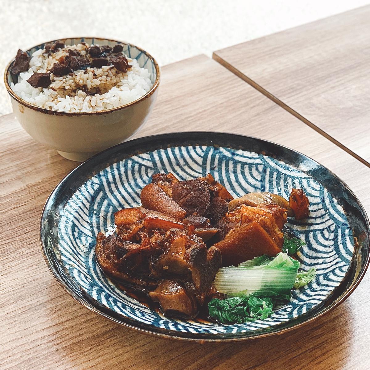 可曾在外舒服地吃上一頓滷肉飯呢?位在市政府附近一家雖為滷肉飯的店,但論店名規格和餐點設計皆如高級餐廳一般,室內裝有中央空調,不管坐在哪個角落都很舒適,餐點以set方式呈現,標榜「滷肉飯四吃」,先品嚐台式功夫菜餚的主餐配白飯,再依自己偏好的鹹淡度淋上滷汁,接著撒上獨家自製的佐料增添咬勁口感,最後還可再點一份半熟蛋,體驗佐上蛋黃的滋味,另外值得一提的是套餐加$82可升級「很餓套餐」,多了小菜以及可續的白飯和飲料,真的是同時享有清靜、驚喜和飽足的一間店👍