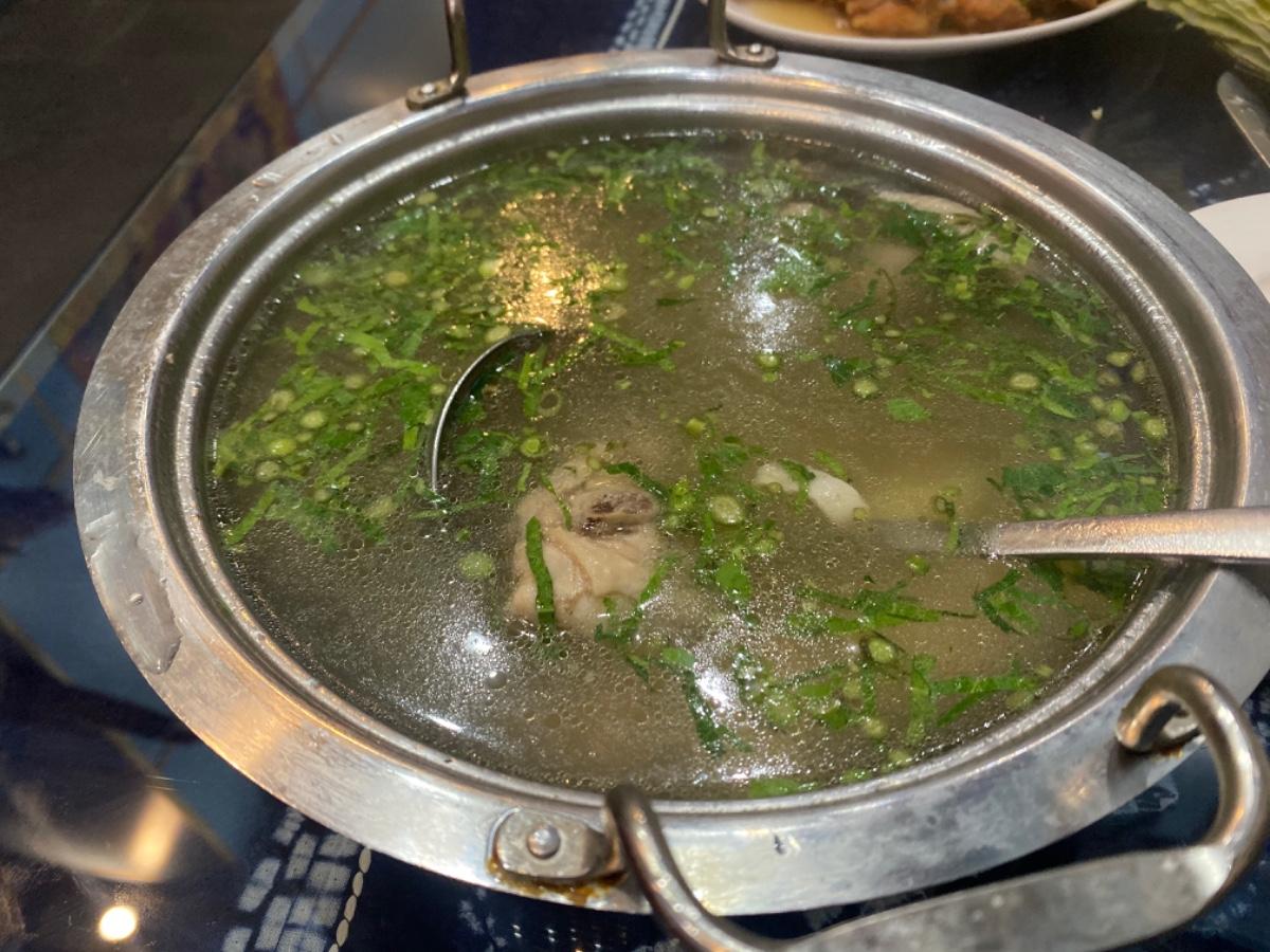 很大一鍋 我們根本喝不完 裡面也是有當歸的味道 雞肉倒是不建議吃 煮的有點柴