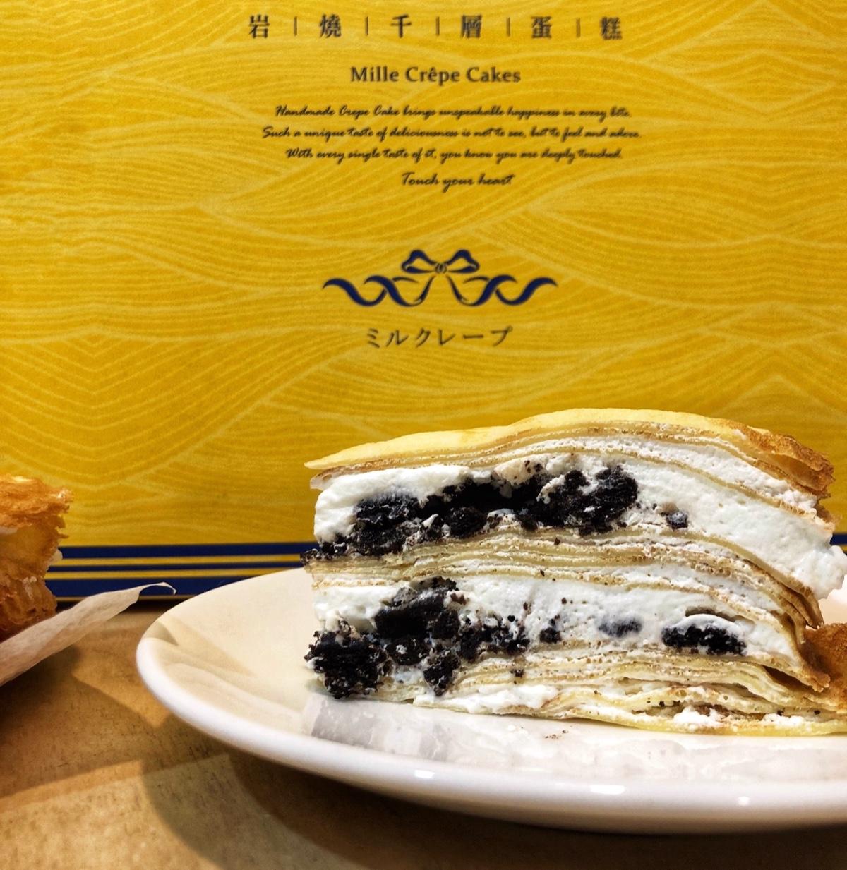 外層千層皮薄又帶有點韌性,真不愧有著香嫩蛋皮之稱,裡頭鮮奶油非常滑順細緻,搭配OREO碎黑餅,甜而不膩,反而越吃越上癮。分明的層次口感與鮮奶油、岩燒蛋皮黃金比例融合,口感豐富,充滿濃郁OREO香氣。
