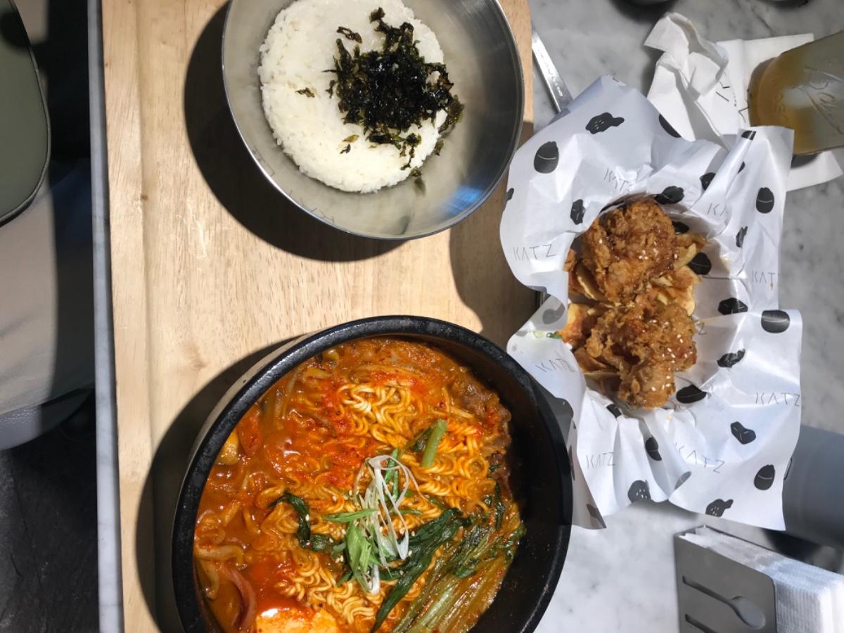 【食記】台中美食|KATZ |韓式料理 地址:台中市東區復興路四段186號7樓 營業時間:11:00-22:00 點的是韓式兩人分享餐$988 部隊鍋🧀️ 奶油蒜香鹹醬炸雞🍗 蔥花辣炒豬肉捏飯糰🍙 #台中景點 #台中美食 #台中美食推薦 #美食日記 #台中美食 #韓式料理 #台中韓式料理 #炸雞 #部隊鍋 #辣炒年糕 #捏飯糰