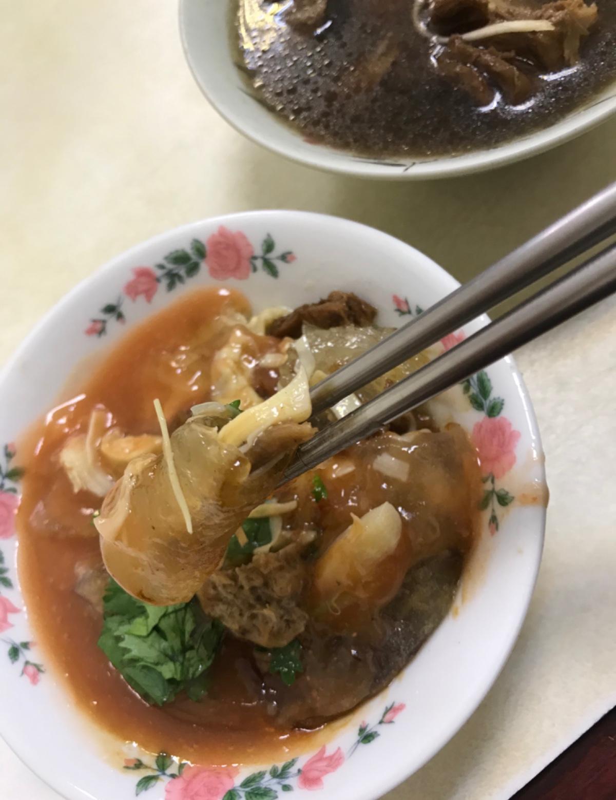 今天趁出來進修比較早走,5:30就到店家,終於吃到素圓了🥳,它家的素圓内餡有包筍絲和大塊的素肉,加上外皮Q彈,吃起來好満足👍。