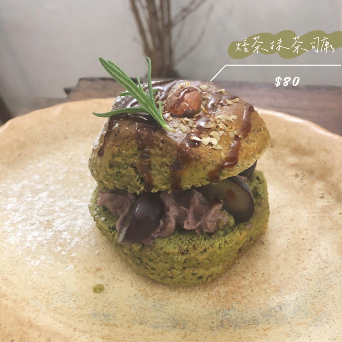 這款將焙茶及抹茶兩種茶類製成的司康,