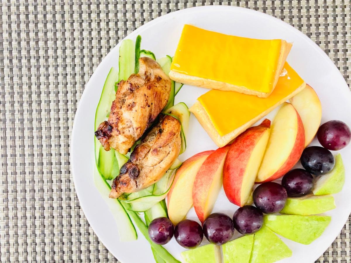 主食:煎香料雞腿排小黃瓜🥒起司生吐司🍞