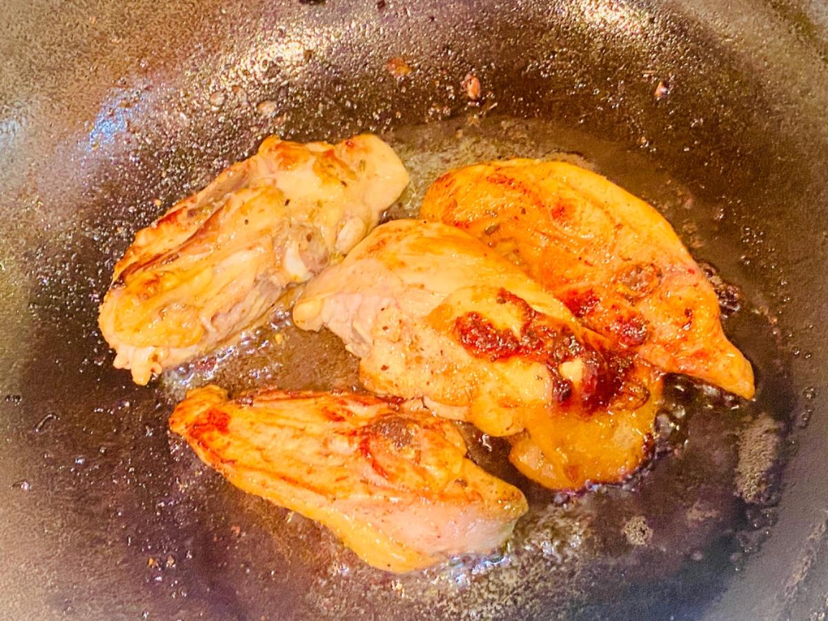 雞腿排:各面煎4分!再側邊各30秒...