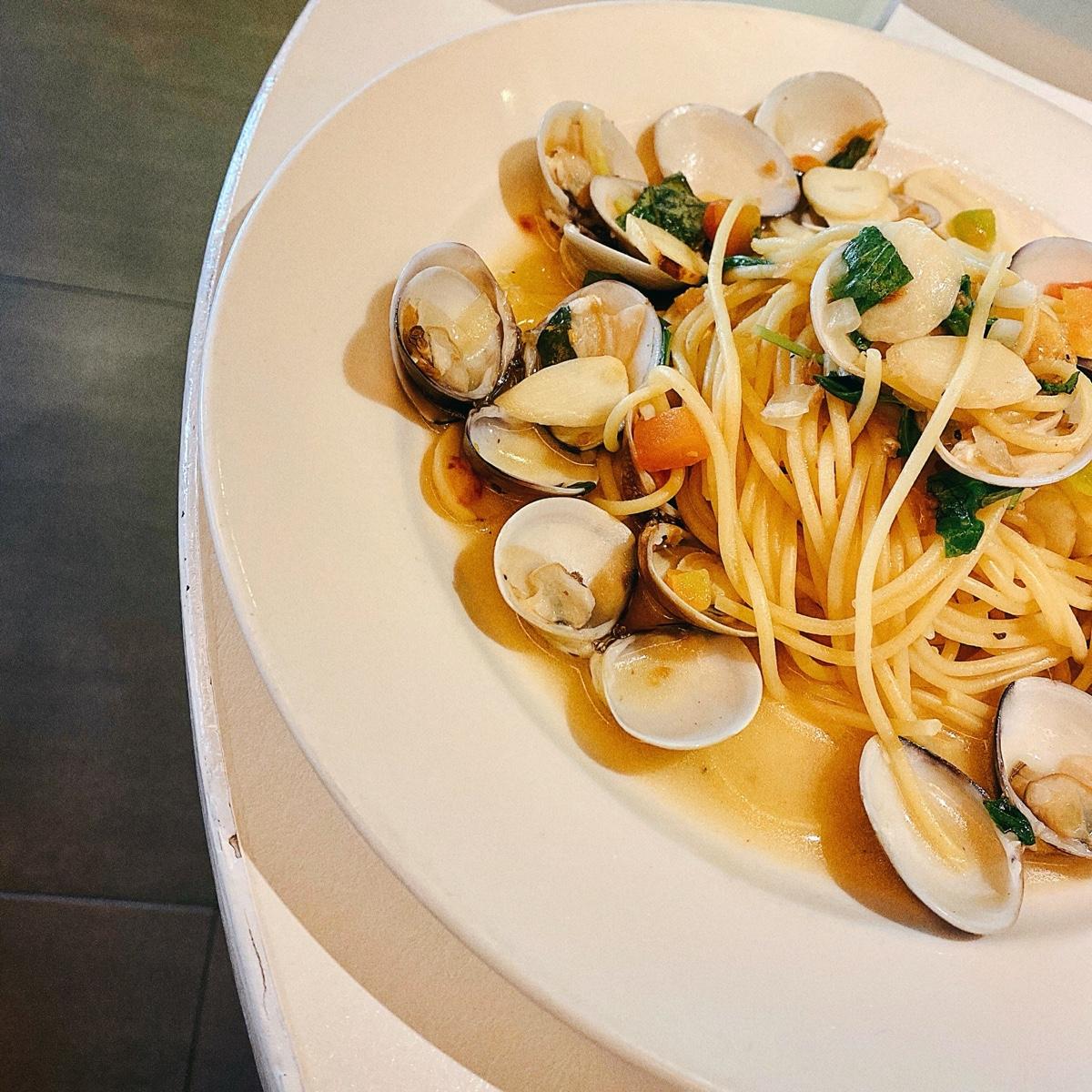 (個人不愛吃細麵,換成一般的義大利麵,酒香味不重,怕酒味的可以試試看)