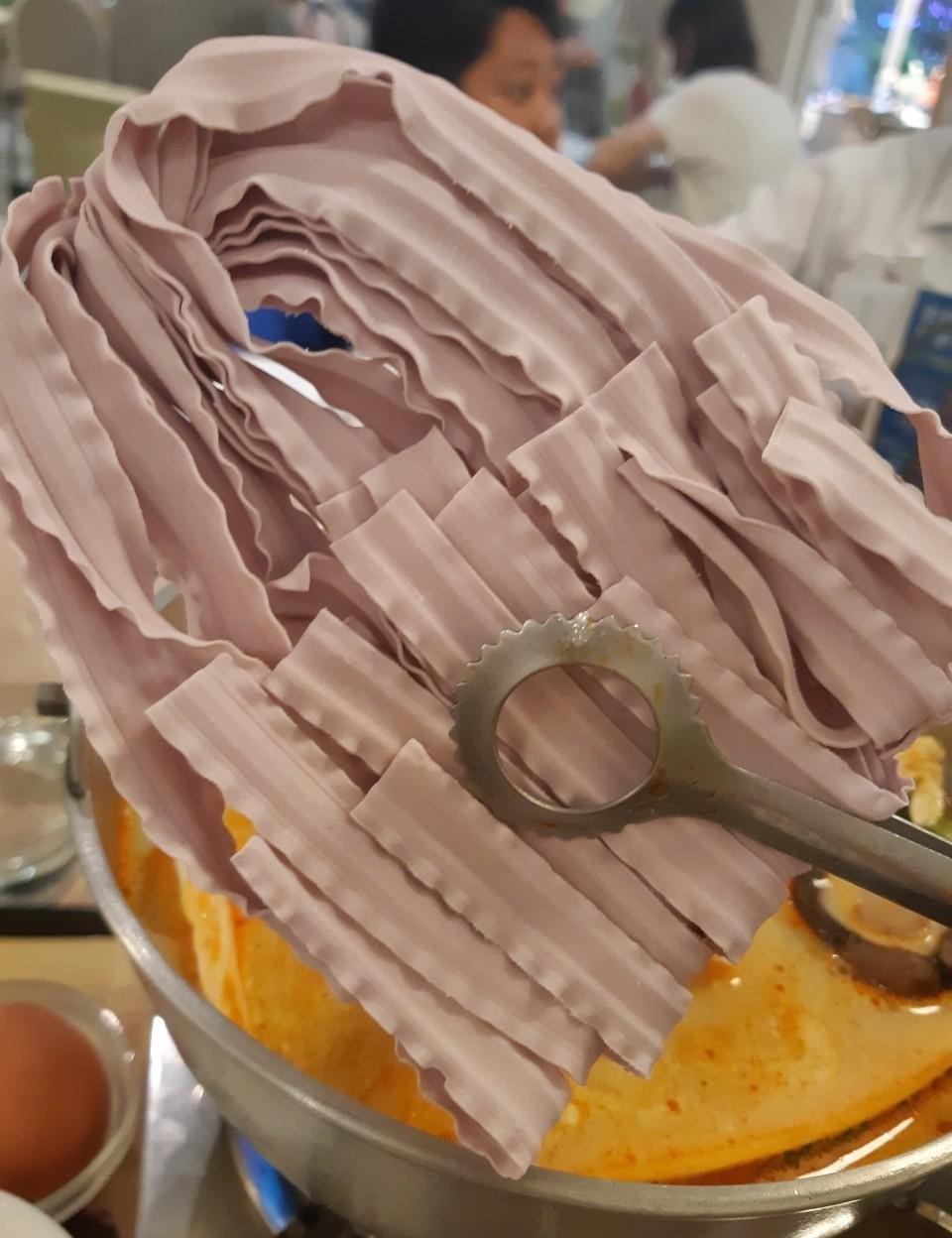 也有賣他們自己做的麵!那天超級幸運,火鍋是附紫色的麵😍