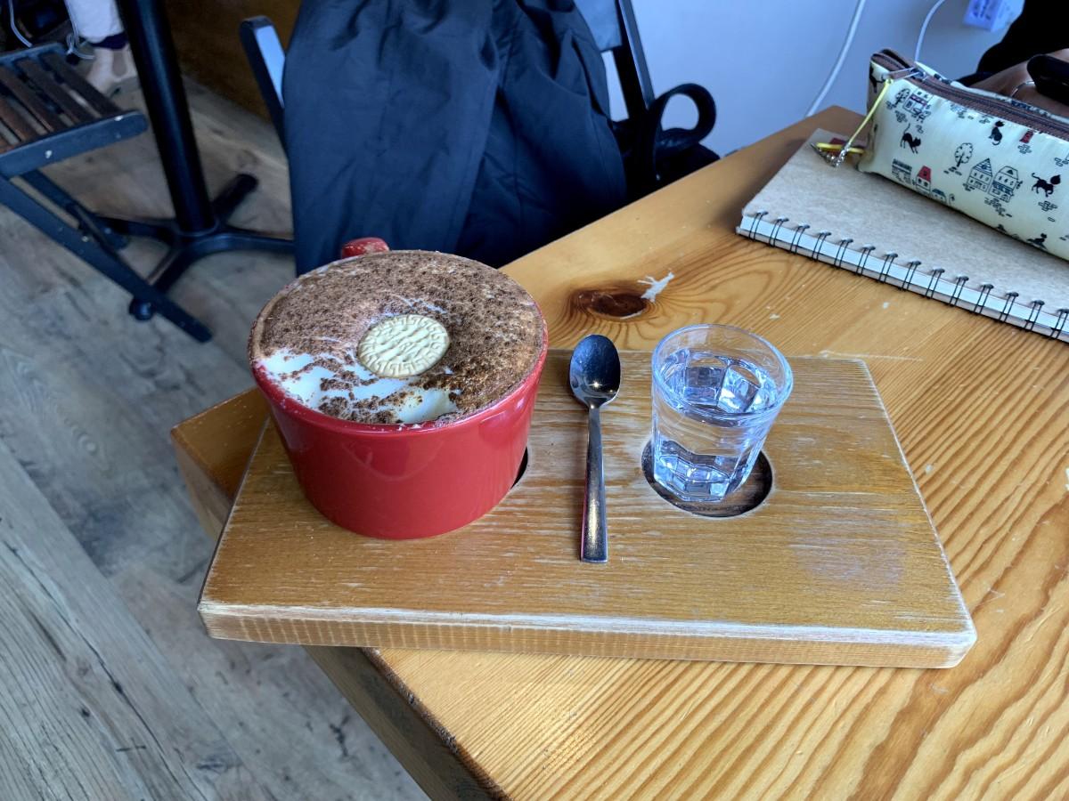 我最常點 Moka 的 Cappuccino 這杯是大杯的 (Grande 大杯) ,上面撒的是肉桂粉~ 店員會問說要可可粉或是肉桂粉,這肉桂粉跟 Cappuccino 真的是絕搭!每次喝 Moka 的 Cappuccino 都不到五分鐘就會被我喝掉 😅 建議上面的那片餅乾要先吃,不然泡爛了以後會變得很軟爛…