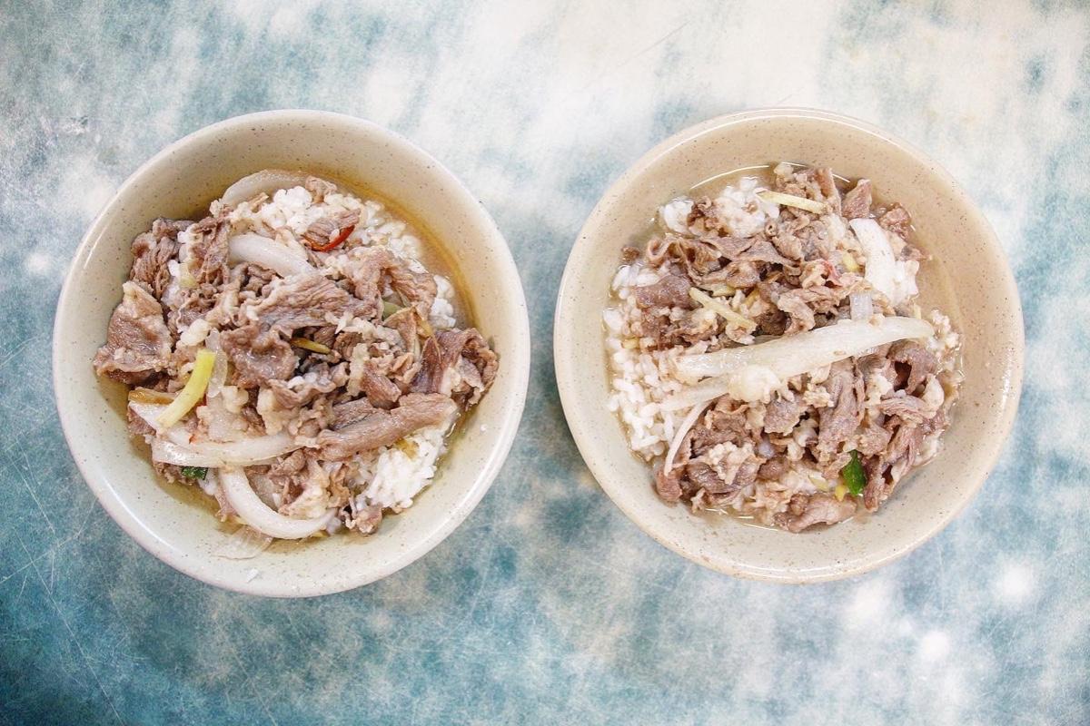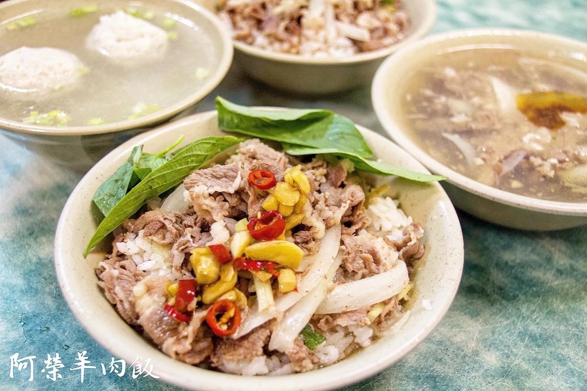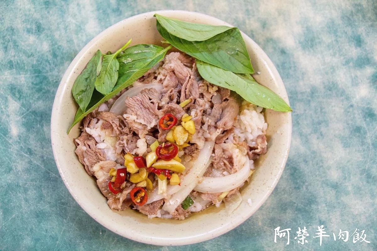 滿滿的羊肉搭配著洋蔥撲滿著飯上,羊肉吃起來不會有羊騷味,搭配著洋蔥的甜,下面的飯是配著湯的泡飯,飯吃起來有濕綿的口感,旁邊還有九層塔及蒜頭辣椒醬油可以加,可以讓整碗羊肉飯多了淡淡的塔香及蒜香,蛋哥激推一定要加
