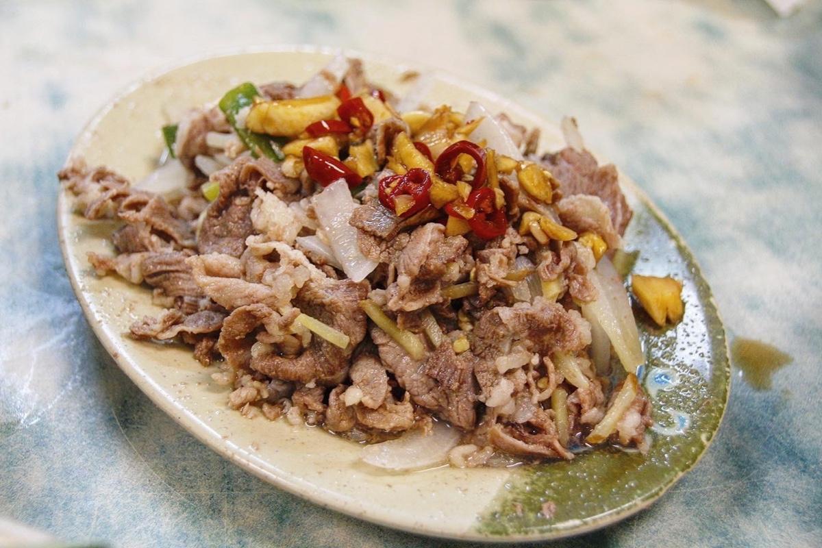 不像炒過的有油膩感,這一盤比較像是拌羊肉,在搭配蒜頭醬油,絕對是拿來配飯的最好選擇