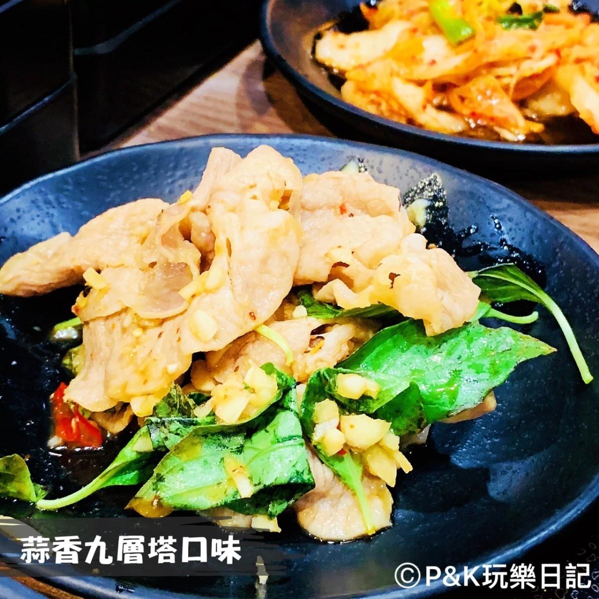 ♥台式蒜香九層塔口味,將煮好的肉一同拌勻,九層塔蒜頭的香氣四溢,就像三杯鮮嫩豬肉一般;此時來去添點飯來配,超搭的啦!