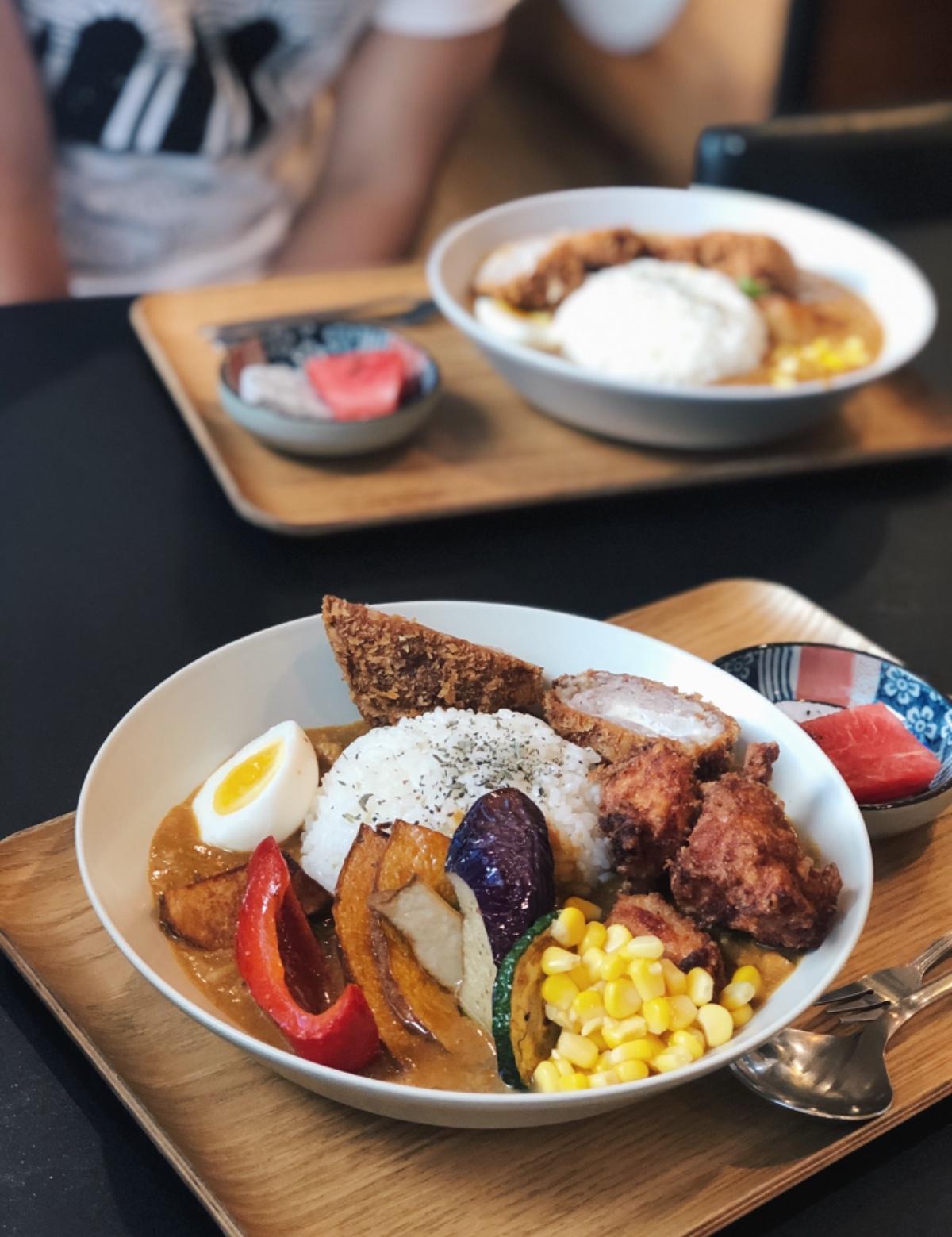 這次終於吃到羅本家《全餐咖哩》,還是店裡的最後一份,南洋咖喱醬鹹鹹微辣,烤得酥酥的蔬菜還有烤茲烤茲的唐揚雞、雞肉本身又很juicy!可惜的是豬排裡面包起士我還是覺得太鹹了。