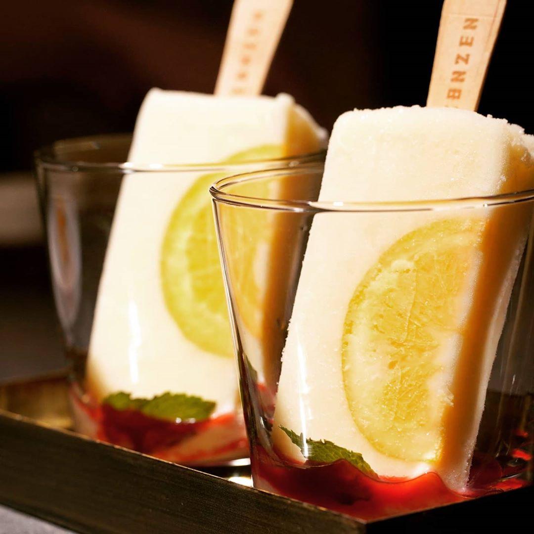 以柑橘、薄荷、優格自行研發的冰棒,底部還有覆盆子玫瑰醬可搭配食用,整體吃起來清新爽口不甜膩,冰棒的微酸與覆盆子醬的微甜完美契合,很推薦!!