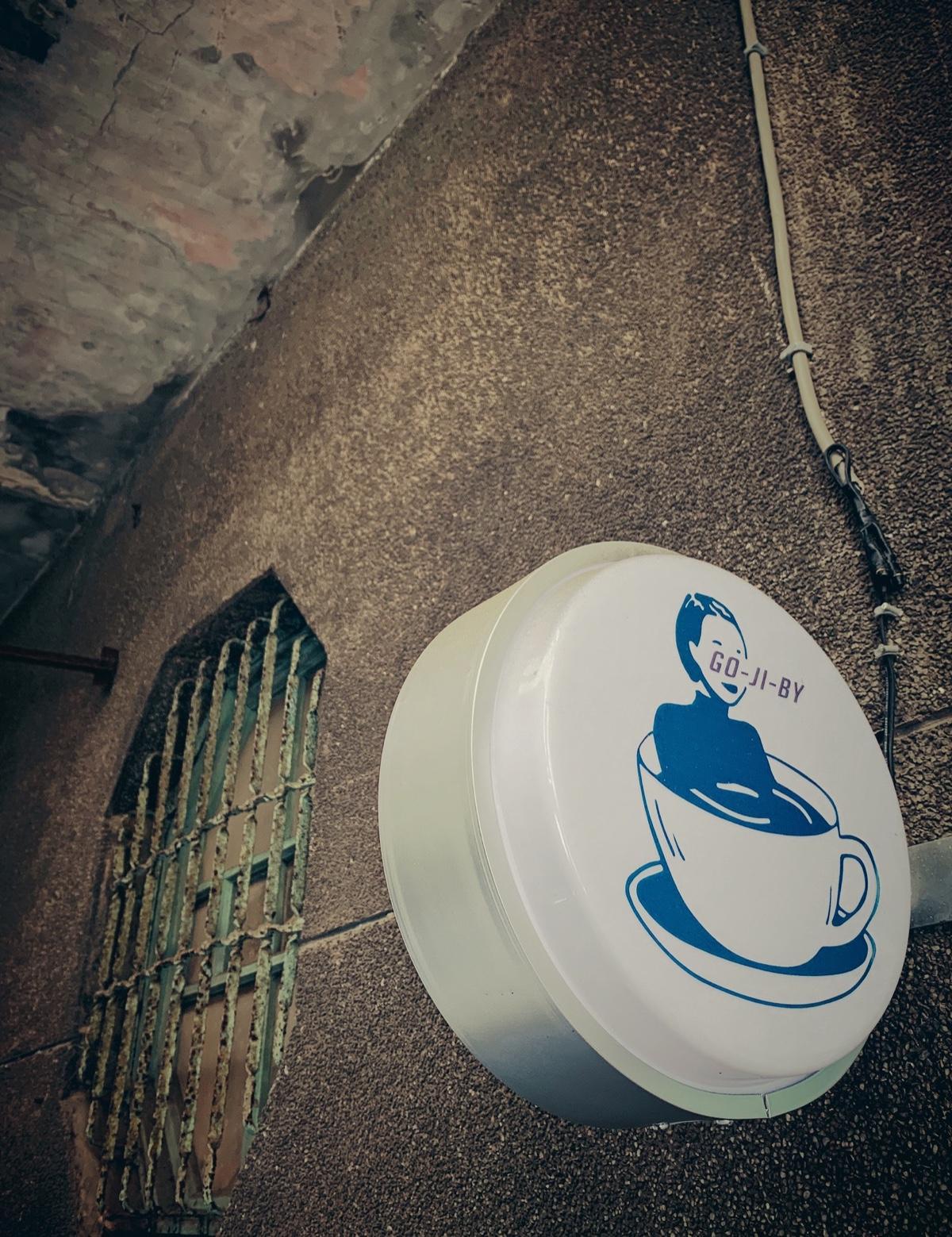 二會的入口不是在正面,而是在旁邊。圓圓的招牌上,一杯咖啡上的「Gojiby」不是英文,用台語念起來就是「再一次」的意思。多可愛的譯法啊。