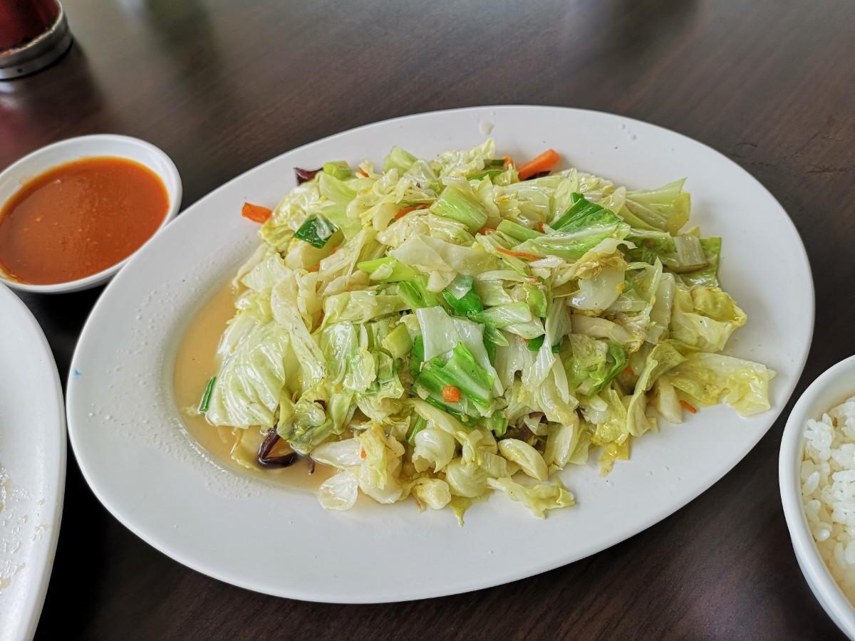 這盤炒高麗菜的份量真的非常多,兩人吃就覺得很有飽足~高麗菜切至相當細碎,口味也不會太油膩,不知不覺就把白飯吃完了!