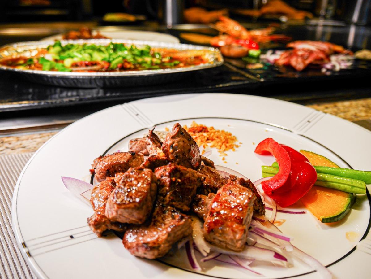 下週就情人節了!這裡的鐵板燒雙人套餐不用1000塊,有天使紅蝦、牛排、豬排、中卷和魚,一樣有蔬菜而且還多了甜點。