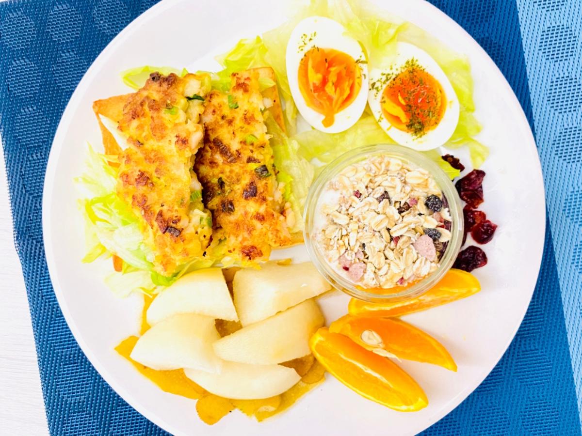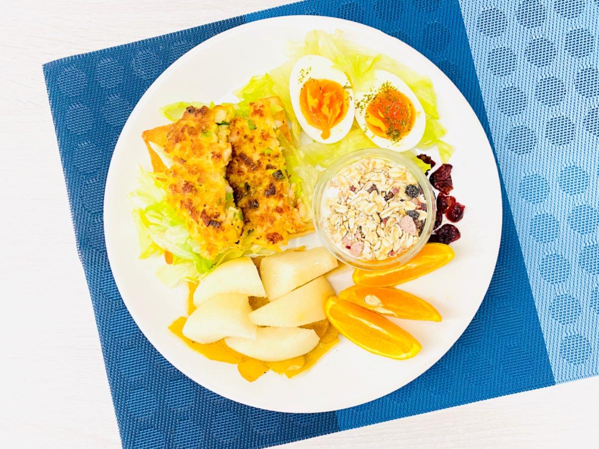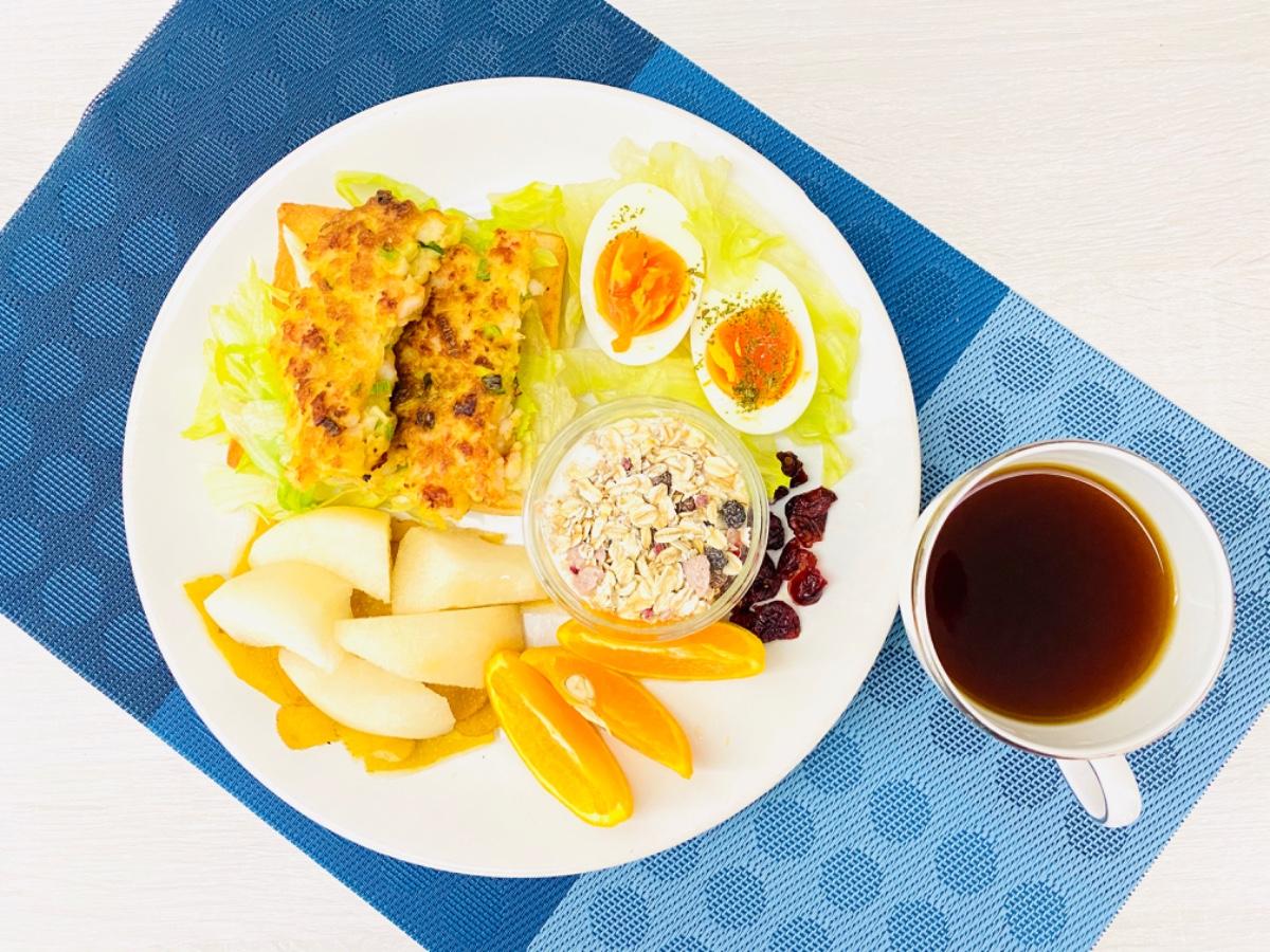 主食:蔥蝦肉餅🧀️水煮蛋生菜🥬生吐司