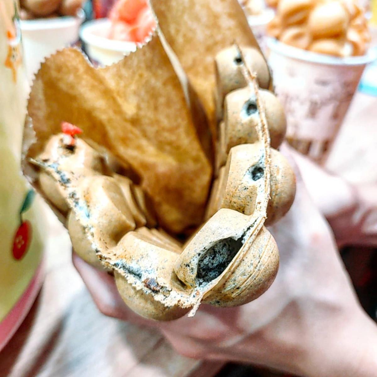 養生之道推薦💕個人覺得黑芝麻餡給得很足。不過,雞蛋仔的蛋香味真的太濃郁啦,有點蓋過黑芝麻的味道。