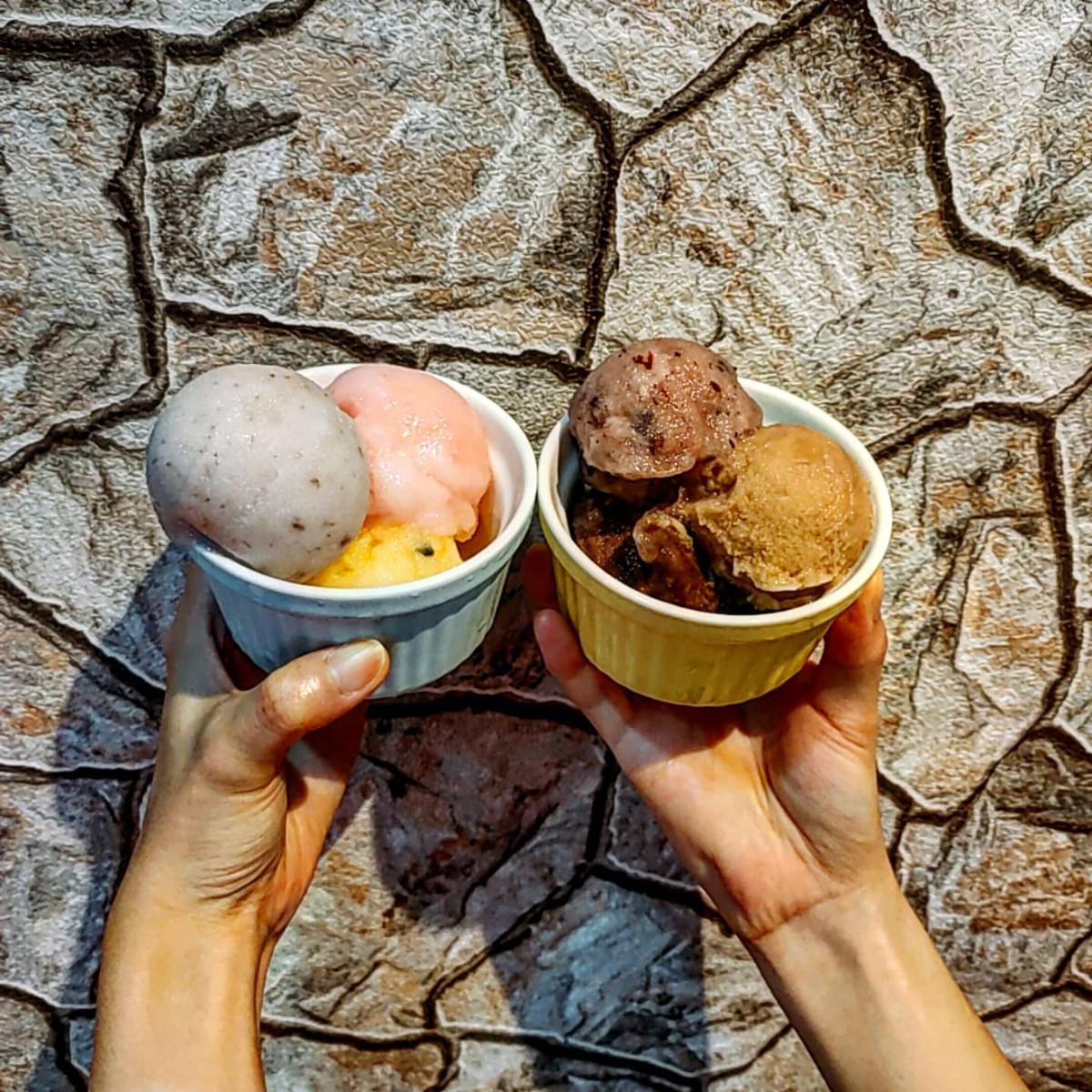 吃起來就是古早味,感覺挺健康的冰淇淋,吃多也不會有罪惡感❗❗芋頭控的我,還是最愛芋頭口味的❤芋頭味很濃郁,喜歡💕我妹最喜歡的是百香果口味的,夏天吃,真的很清爽。木頭則pick了酸梅口味。我覺得酸梅口味挺特別的,也是可以點點看唷👌