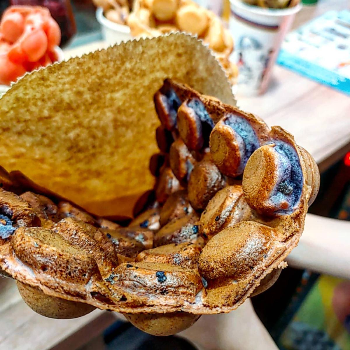 網美必選💕是新鮮的紫薯❗❗吃起來還不錯,紫薯味道是淡淡的,和雞蛋仔的蛋香味屬於相輔相成,紫色也超美,好拍也好吃😝😝