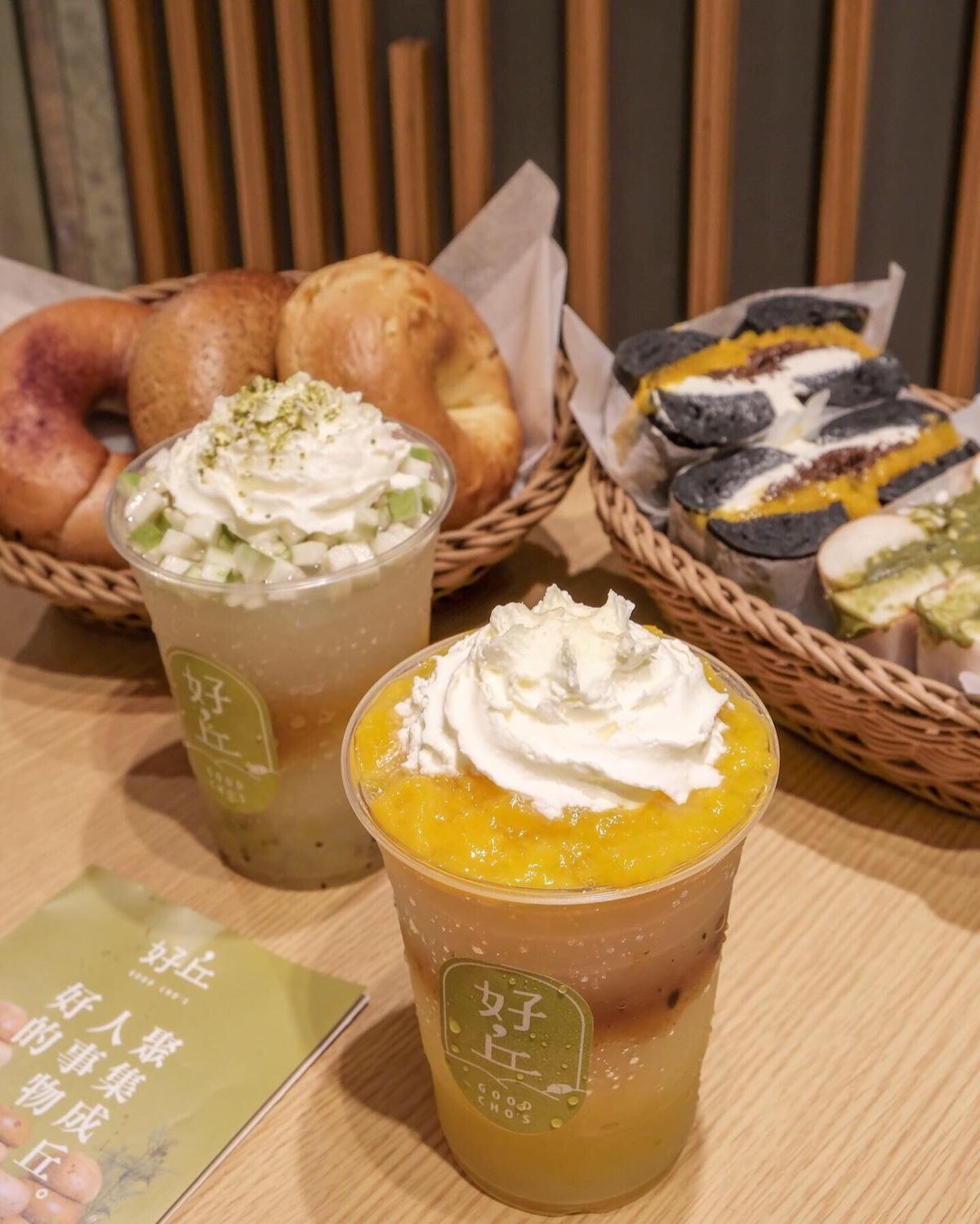 每次逛新光最愛的小點心就是#好丘貝果 這次又推出厲害厚醬🆕品➕山⛰️系凍飲~