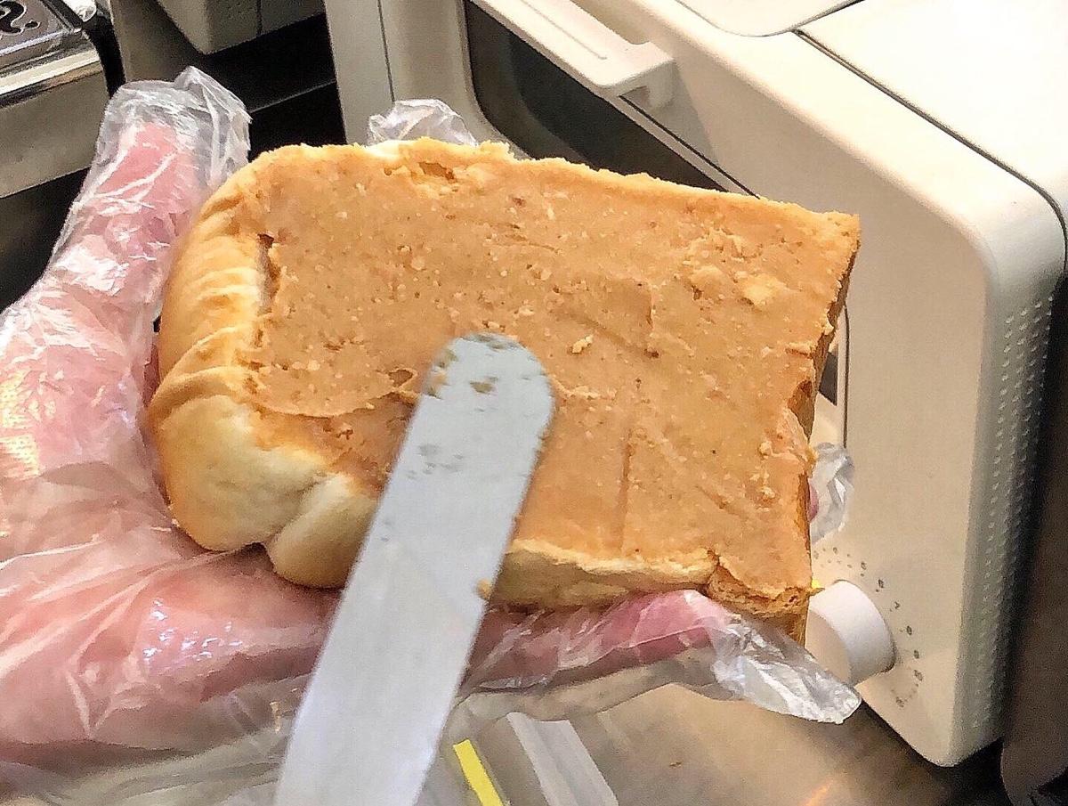 選用紐西蘭特級奶粉與法國頂級奶油製作而成的奶酥抹醬,毫不手軟的直接在吐司抹上厚厚一層的奶酥醬,香醇濃郁的香氣,配上鬆軟的山形厚片吐司,整個好滿足˶´⚰︎`˵