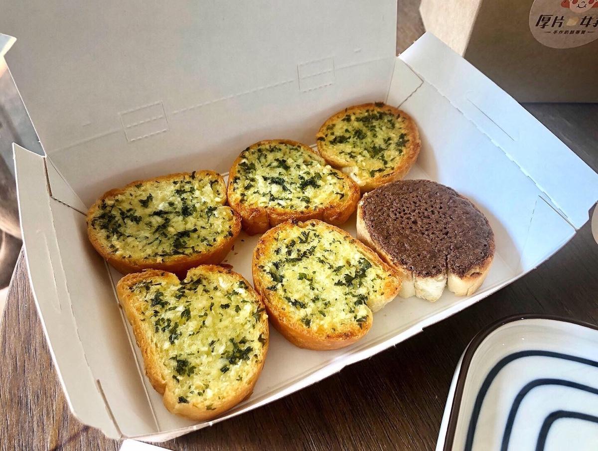 手工自製的迷人香蒜抹醬,鮮採進口蒜頭,拌入巴西里香氣,搭配縮小版的迷你厚吐司,小小圓圓的一塊,很適合給小朋友或大家分食享用,酥脆的口感,吃入口整個蒜香味在嘴裡散發出來