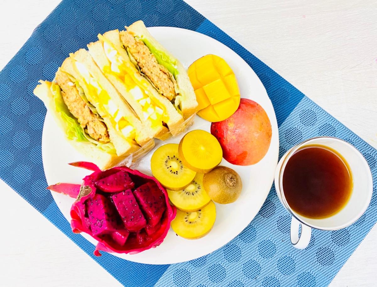 主食:起司🧀️漢堡排生菜🥬水煮蛋三明治🥪