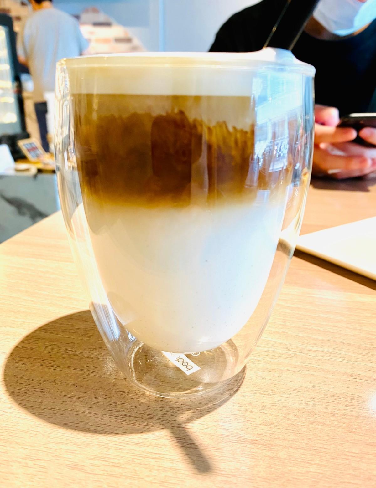 因為要待一陣子,所以筆者也點了一杯榛果拿鐵來喝喝看~表現中規中矩,跟所有咖啡店做的味道一樣。