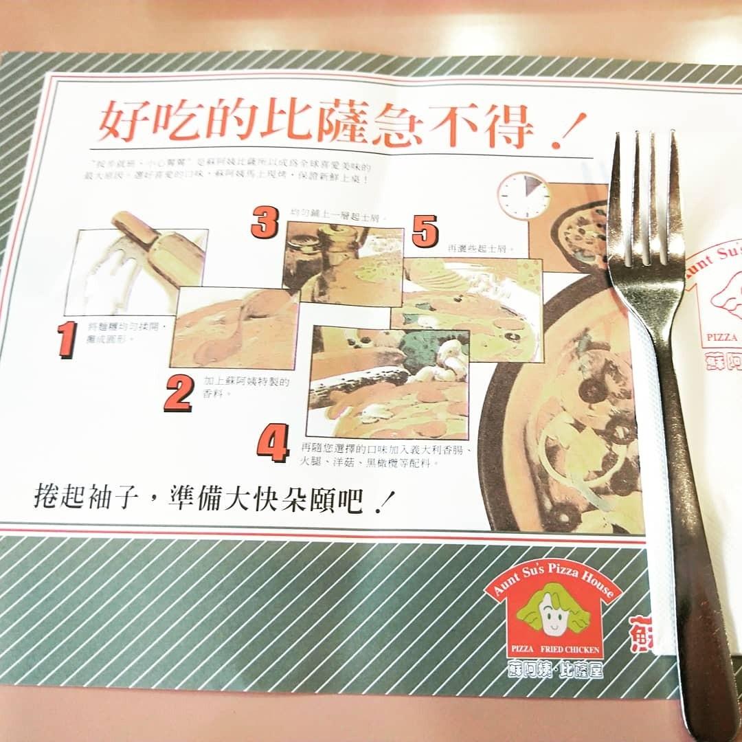 #台北市 #台北美食 #國父紀念館 #國父紀念館美食 #蘇阿姨比薩屋 # #披薩 #炸雞 #馬鈴薯#沙拉🥗#三明治#義大利麵🍝 #開胃菜🍴#另加收一成服務費#海鮮精華鬆厚披薩#謝謝親愛的你😘 #🐻🐰#七夕情人節#七夕情人節快樂💑 #謝謝親愛的請吃飯♥️#披薩好好吃😋 蘇阿姨炸雞不輸給披薩,可點3、5、9、15塊炸雞組合,價格從180元到830元。小披薩9吋,大披薩12吋,餅皮有薄皮、鬆厚和厚皮三種選擇,另外有甜點布丁,汽水、果汁、檸檬紅茶、咖啡、台啤。